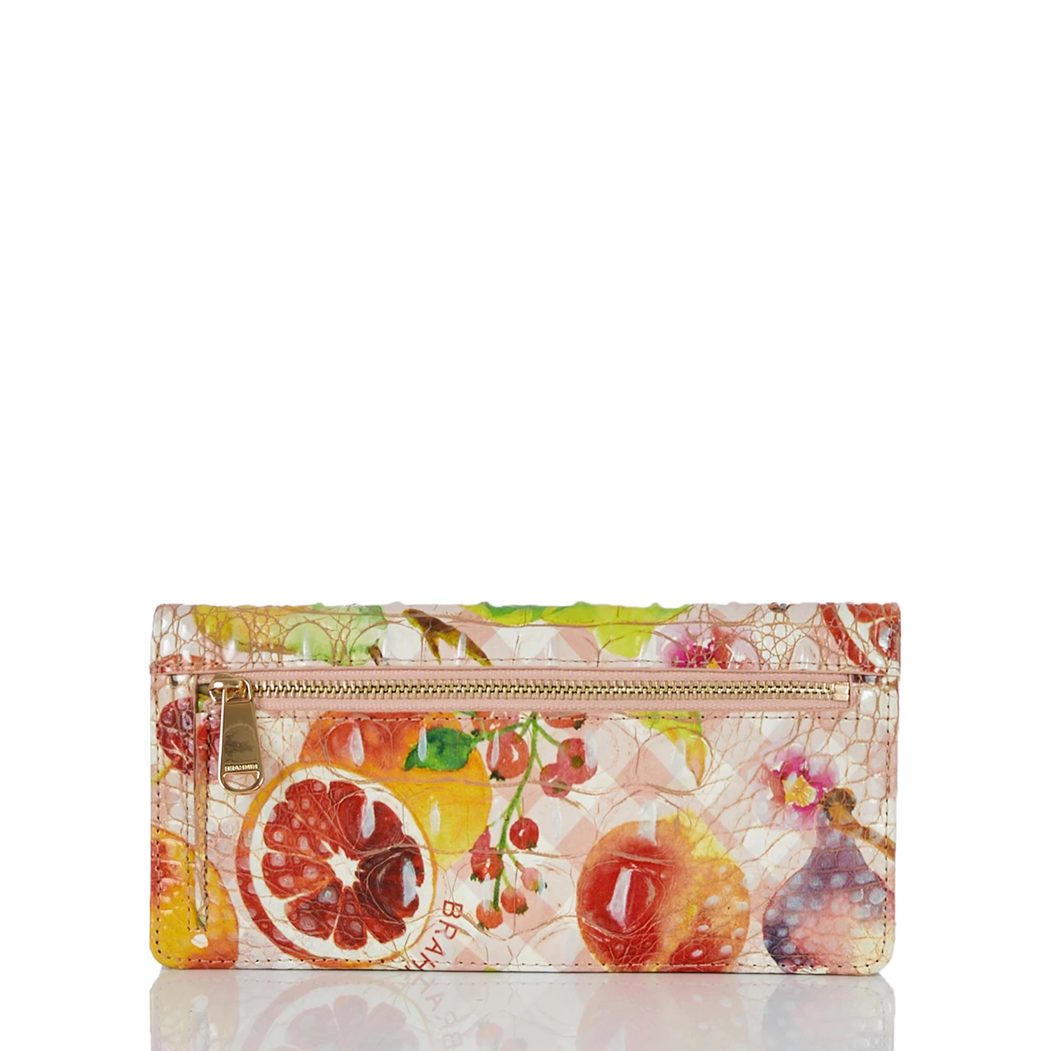 Featured in Fruit Salad Ombre Melbourne, a whimsical print that is as playful and fresh as the season itself. The pastel pink gingham base is a nod to carefree spring picnics with a subtle femininity that exudes joy. Vibrant, oversize fruits bring in an unexpected element that adds a bit of boldness that gives this energy. Made with croc-embossed leather.