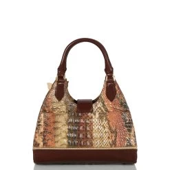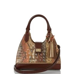 Featured in Pecan Spicewood, a new take on trending fall neutrals. Spice up the season with this snake print in varying shades of neutrals. The Italian smooth cognac leather brings an element of the classic and a warm pop of gold lizard adds dimension. The resin charm tassel elevates this versatile collection. Made with genuine leather.