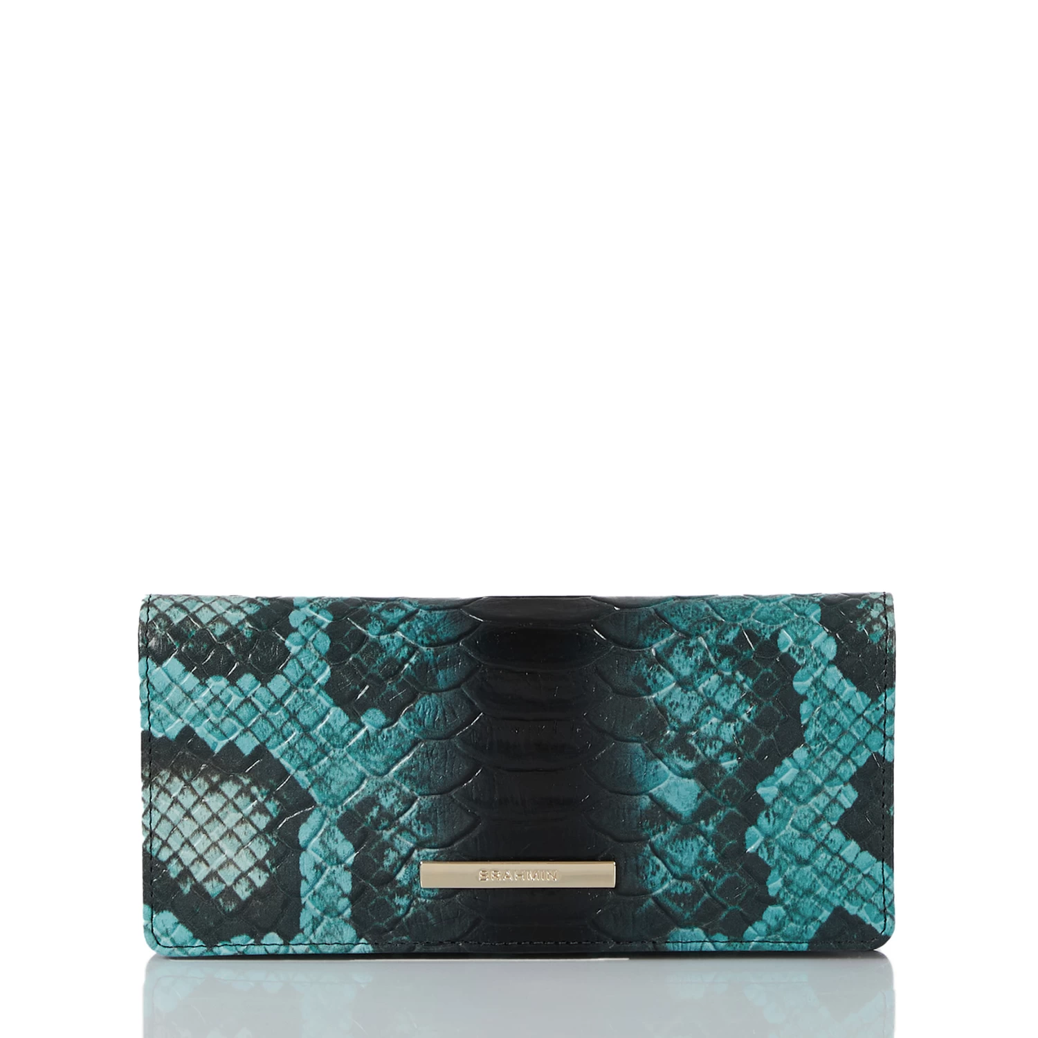 Featured in Blue Waterford, this collection features a blue Italian snake that captures the serene tones of mirroring in water. Paired with a tonal smooth Italian leather, this collection has a true luxe feel. Made with genuine leather.