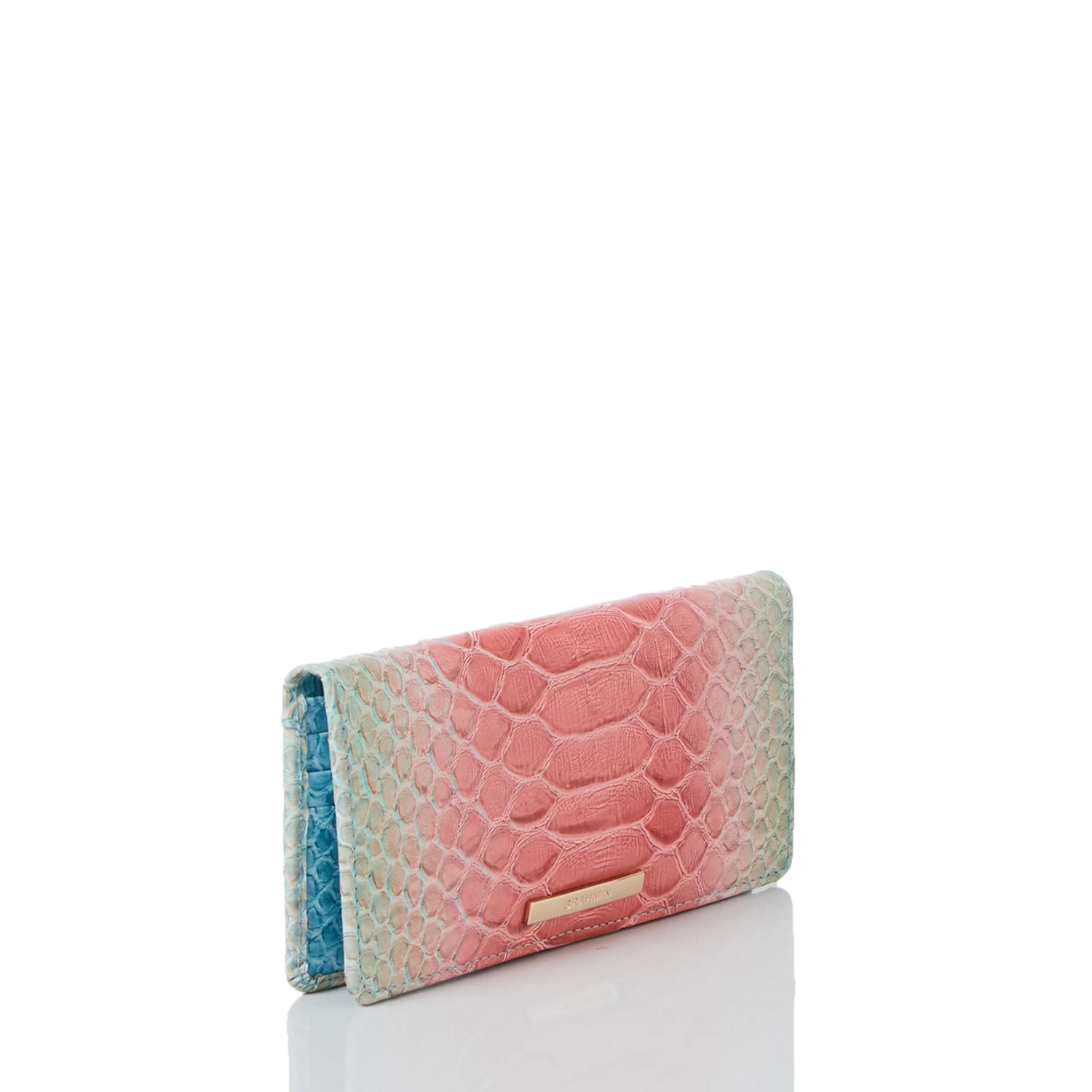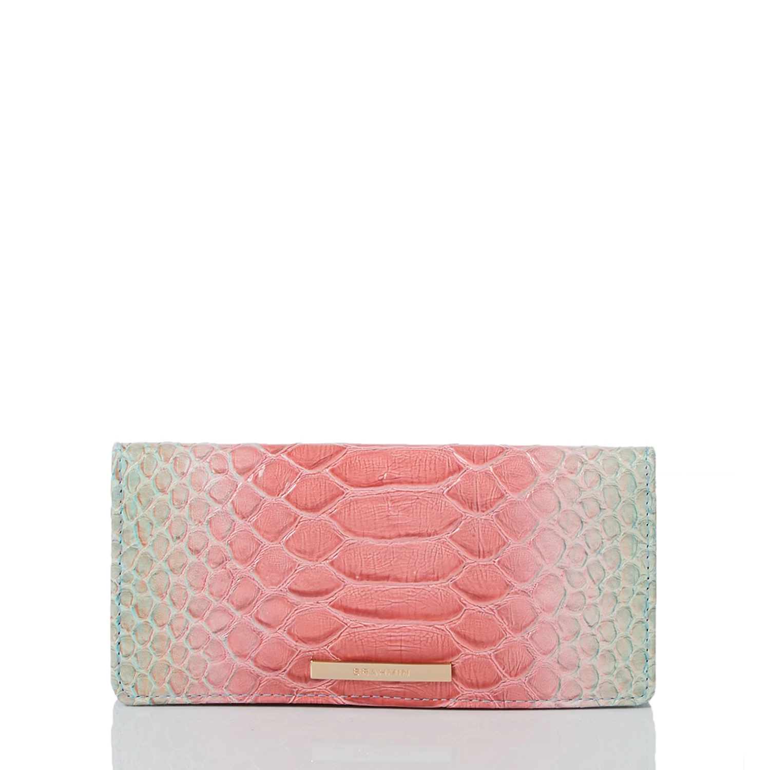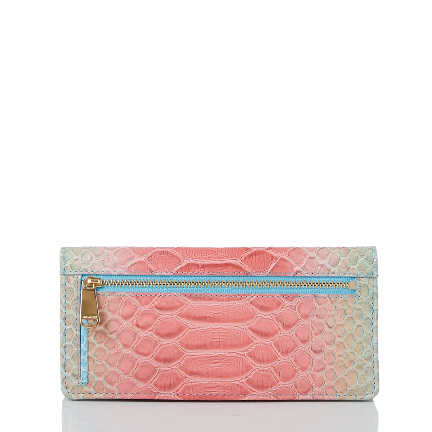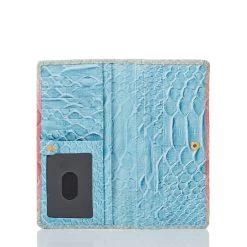 Featured in Daylily Volute, a whimsical oversized exotic with a cheerful color combination that captures the spirit of the season. Daylily Volute blends together delicate pink, soft blue, and electric green on an enlarged snake texture. A solid blue trim adds dimension. Made with genuine leather.