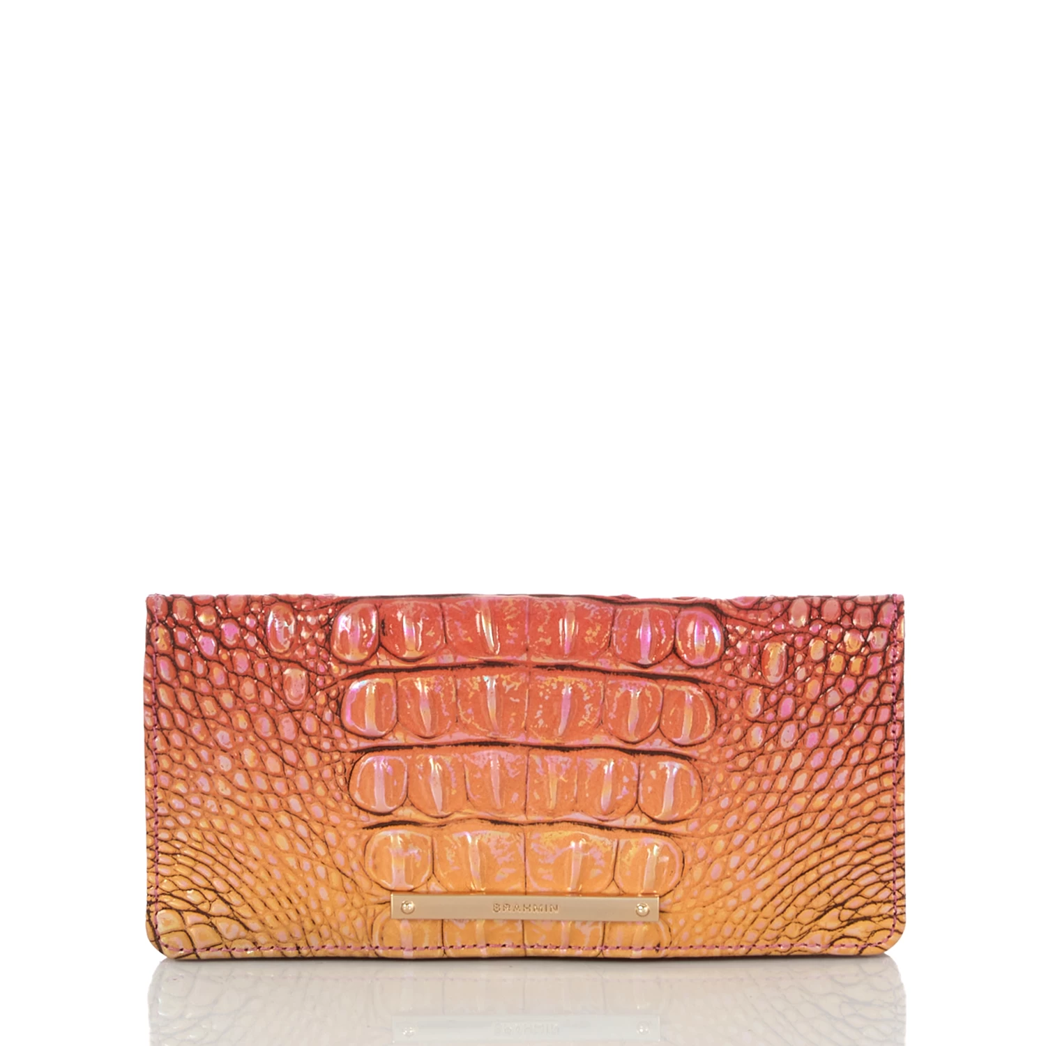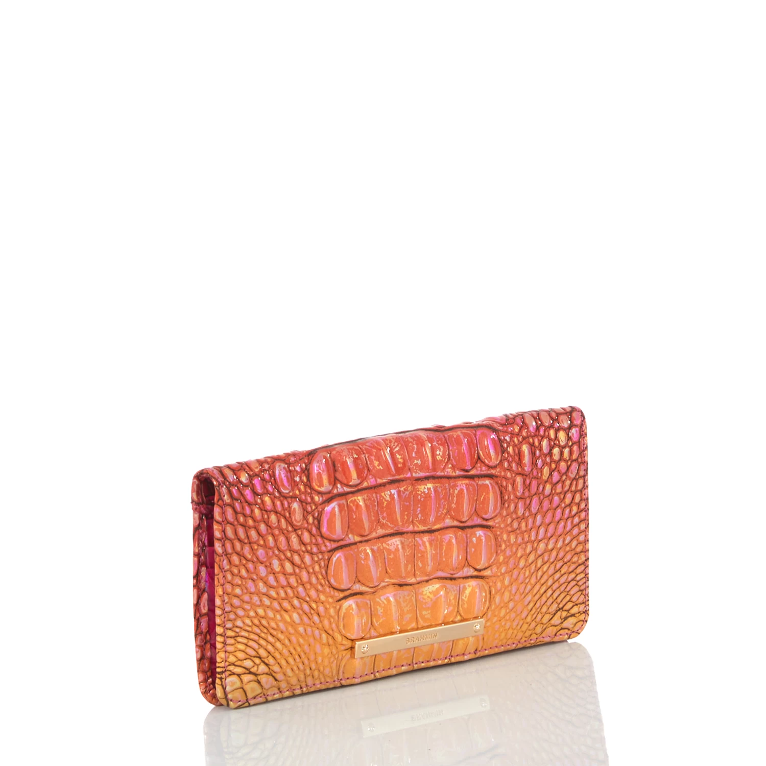 Featured in Horizon Ombre Melbourne, a feel-good ombre inspired by the summer sunset. This skyline of colors features sunset yellow, clay red, dusty pink, violet quartz and deep teal. The iridescent foil finish gives this a brilliant glow that inspires. Made with genuine croc-embossed leather.