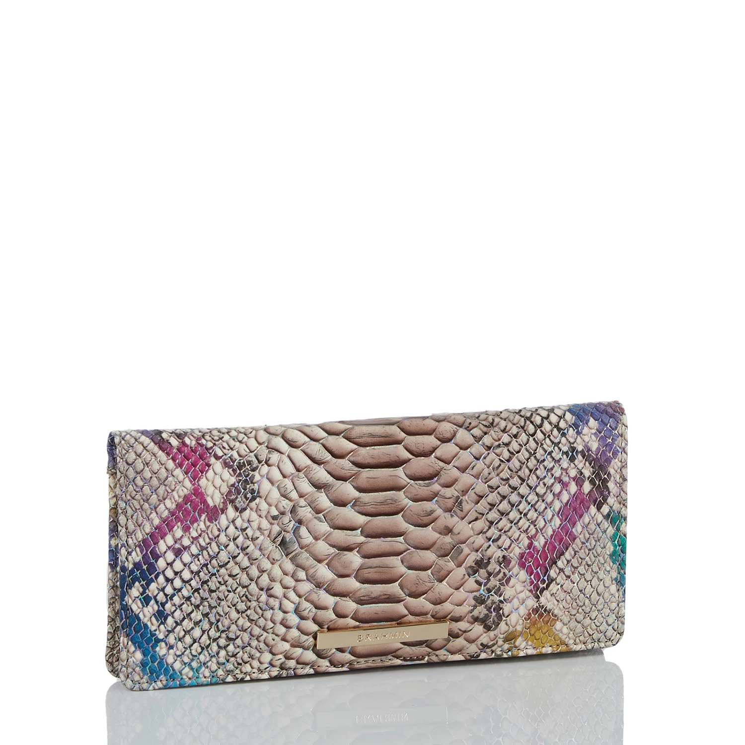Featured in Multi Knightley, an unexpected, fresh take on seville snake. The classic snake embossed texture is mixed with bright, vibrant colors for a modern reinvention while the neutral base keeps this ultra-versatile and easy to style. The iridescent accents give this a hint of shine for an extra-special touch. Made with genuine leather.