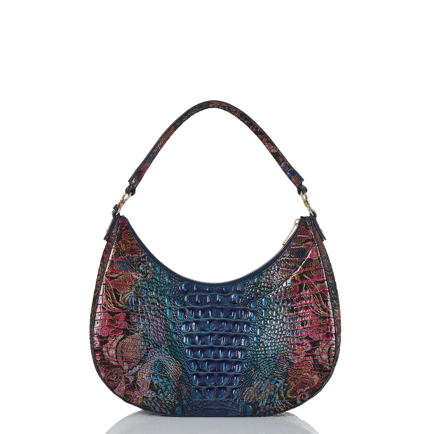 Featured in Estate Ombre Melbourne, this is a sophisticated ombre with a rich blue transitioning to an antique inspired lace floral. Made with genuine croc-embossed leather.
