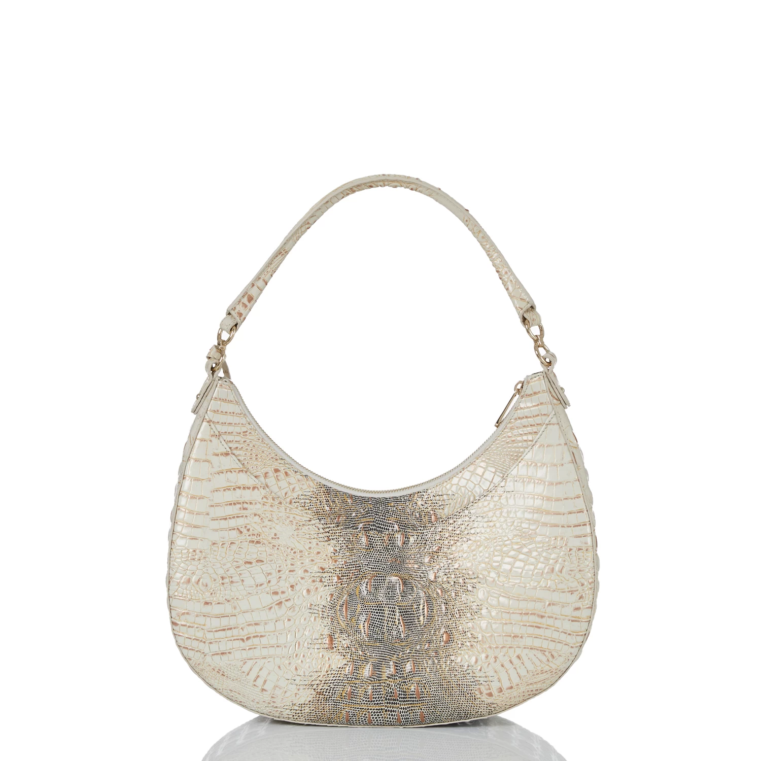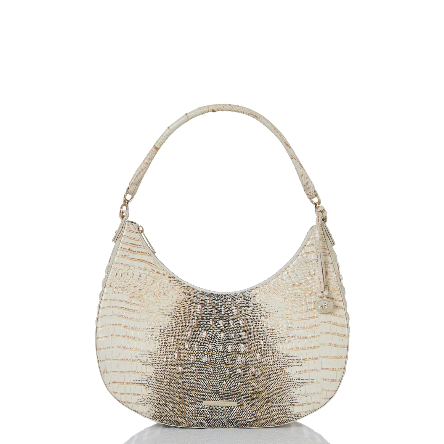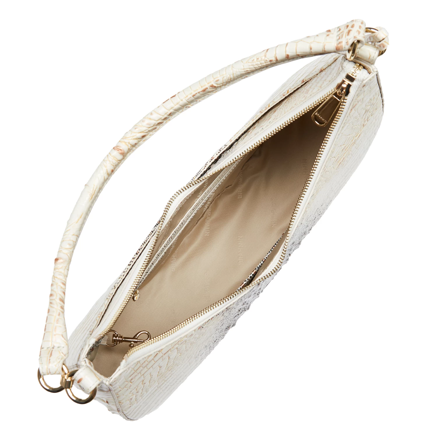 Featured in Ivory Iguana Melbourne, an elevated new neutral. This versatile warm cream features gold accents that lend luxury to the look. This also features hints of a lizard print for added dimension. Made with genuine croc-embossed leather.