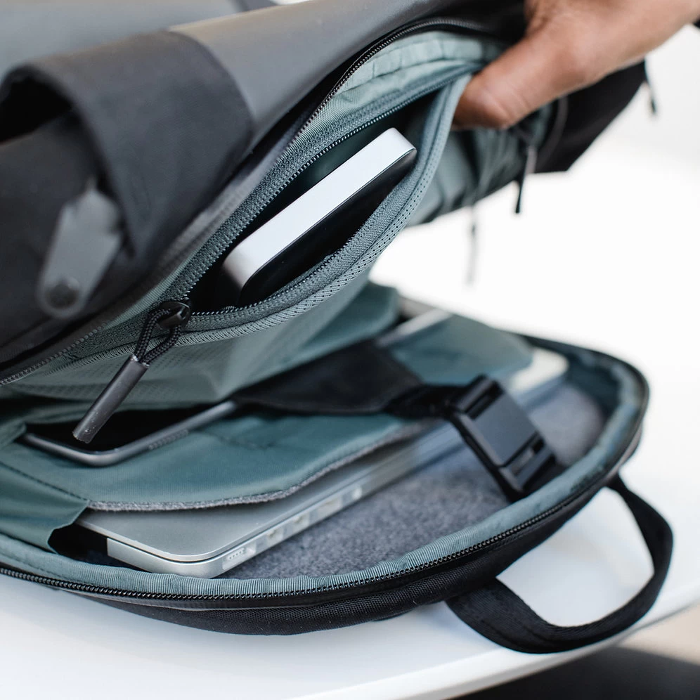 - Stretch-mesh pockets easily store essentials like laptop charger and mouse.