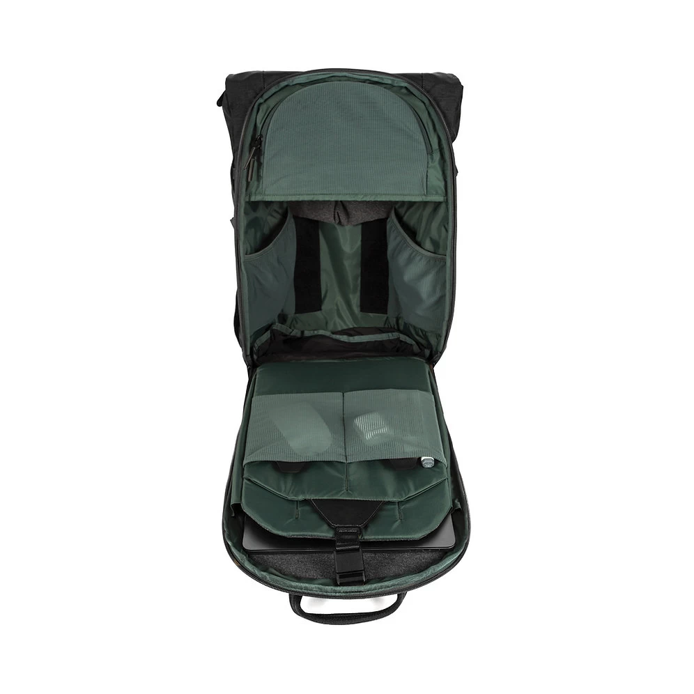 - Stash pockets made from stretch mesh keep items separate from the main compartment.