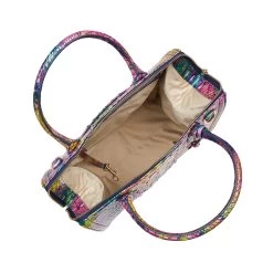 Featured in Desire Melbourne, a brilliant display of color and artistry. This bold, colorful print features electric pink, brilliant yellow, rich green, and deep indigo. The blend of colors creates a meaningful display that is guaranteed to get you noticed. Made with genuine croc-embossed leather.