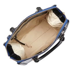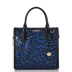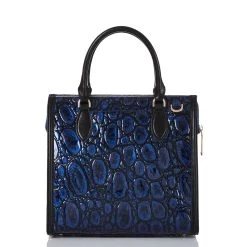 Featured in Kyanite Curie, a dynamic new blue. This collection combines a liquid patent Kyanite croc with a subtle eye-catching metallic and a black Italian smooth. The multi-dimensional blend of color and texture brings boldness to the season. Made with genuine leather.