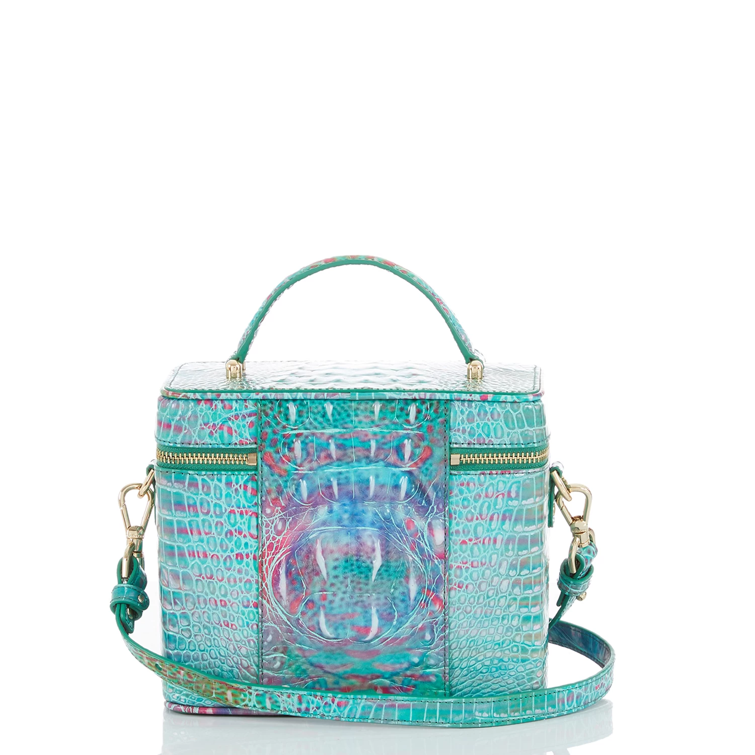 Featured in Blue Fin Melbourne, inspired by the surreal, serene beauty of all things aquatic. The freshwater blues and soft greens come to life with the subtle hints of magenta that add an element of the ethereal. The mesmerizing display of color taps into our imagination, creating the allusion of fish scales. Made with genuine croc-embossed leather.