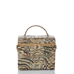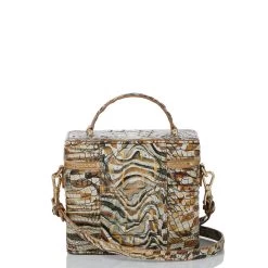 Featured in Dash Melbourne, an unexpected new print. This creative reinvention of a checkerboard print swirls together warm golden-brown tones to create movement in a mesmerizing way. The gold tipping adds elevated freshness. Made with genuine croc-embossed leather.