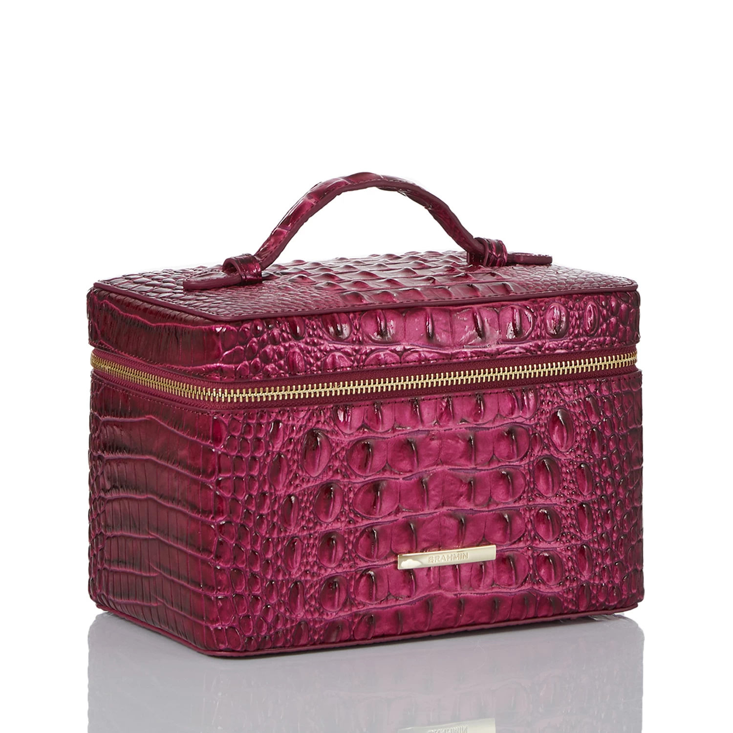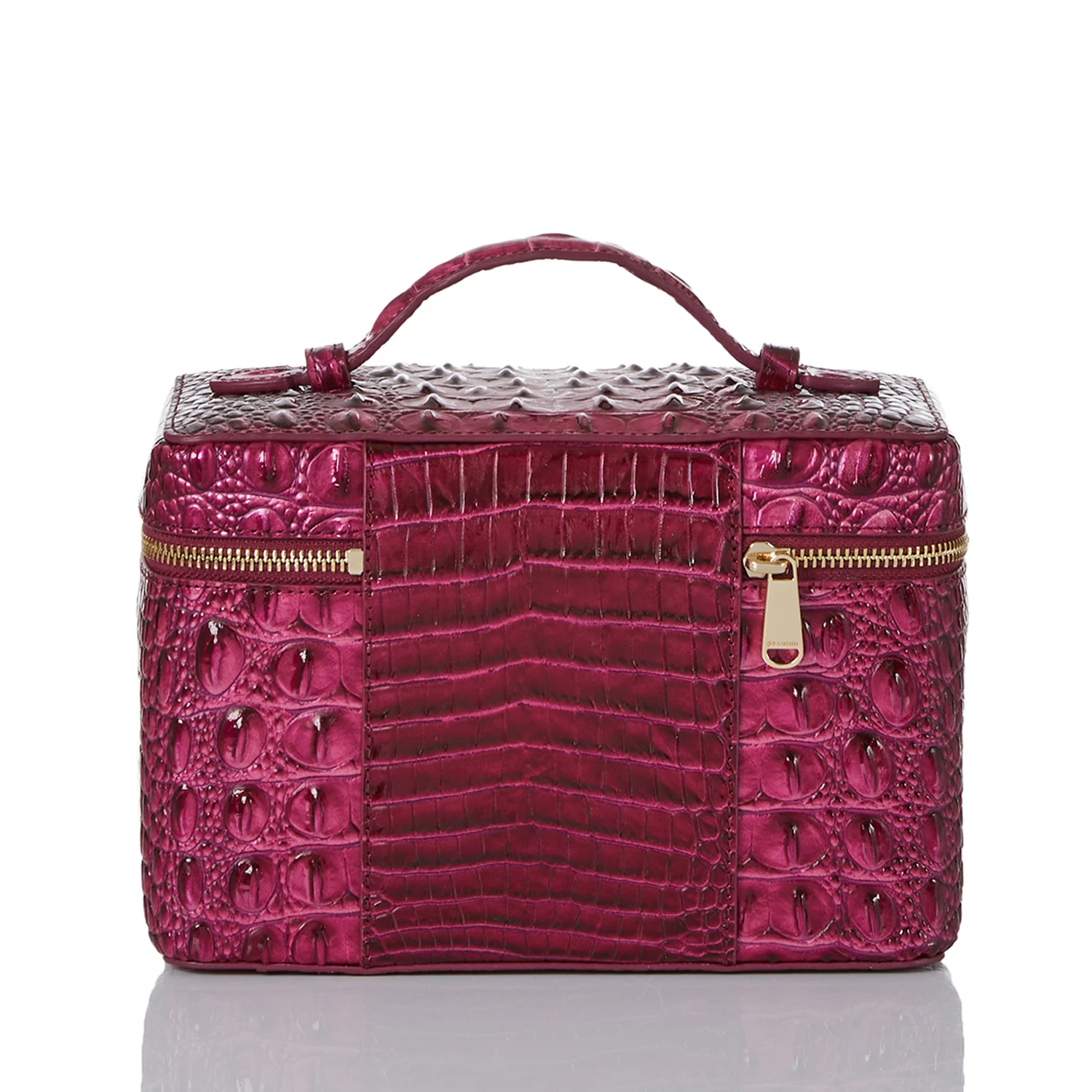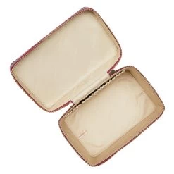 The Charmaine is a must-have travel makeup bag. This structured train case offers plenty of space for your cosmetics and toiletries. Store foundation, blush, powder, mascara, wipes, and more. Use the interior elastic pocket to keep brushes and other items in place. A wide zip-around opening makes it easy to retrieve makeup, while a hinge design lets you quickly view the inside contents. The top handle folds for easy storage.