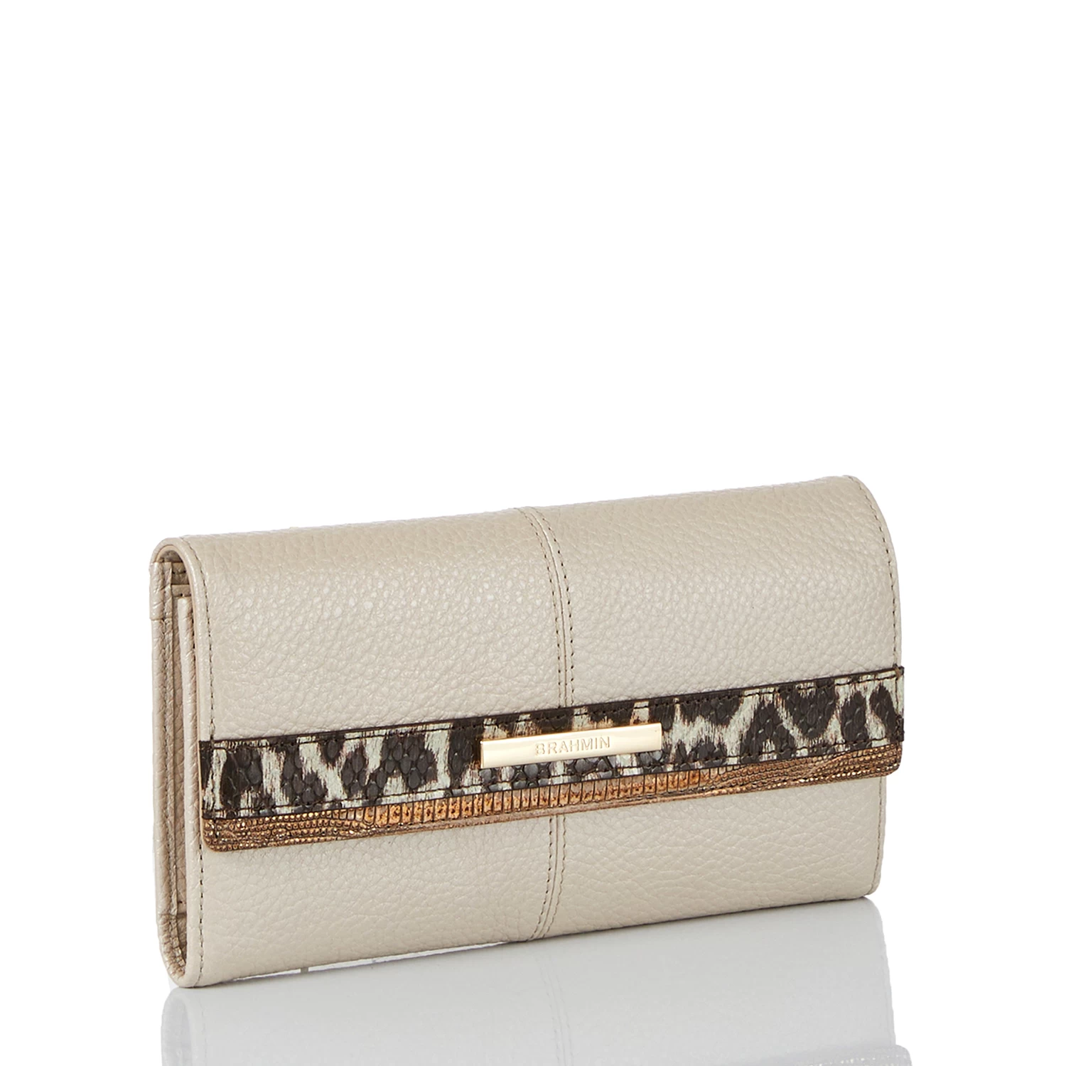 Featured in Ivory Iguana Garces, a fresh take on neutral with a pearlized finish. The ivory pebble leather has a pearlescent glow and gets accented with a leopard print trim. This creative combination is perfect for adding a touch of interest to all your ensembles. Made with genuine leather.