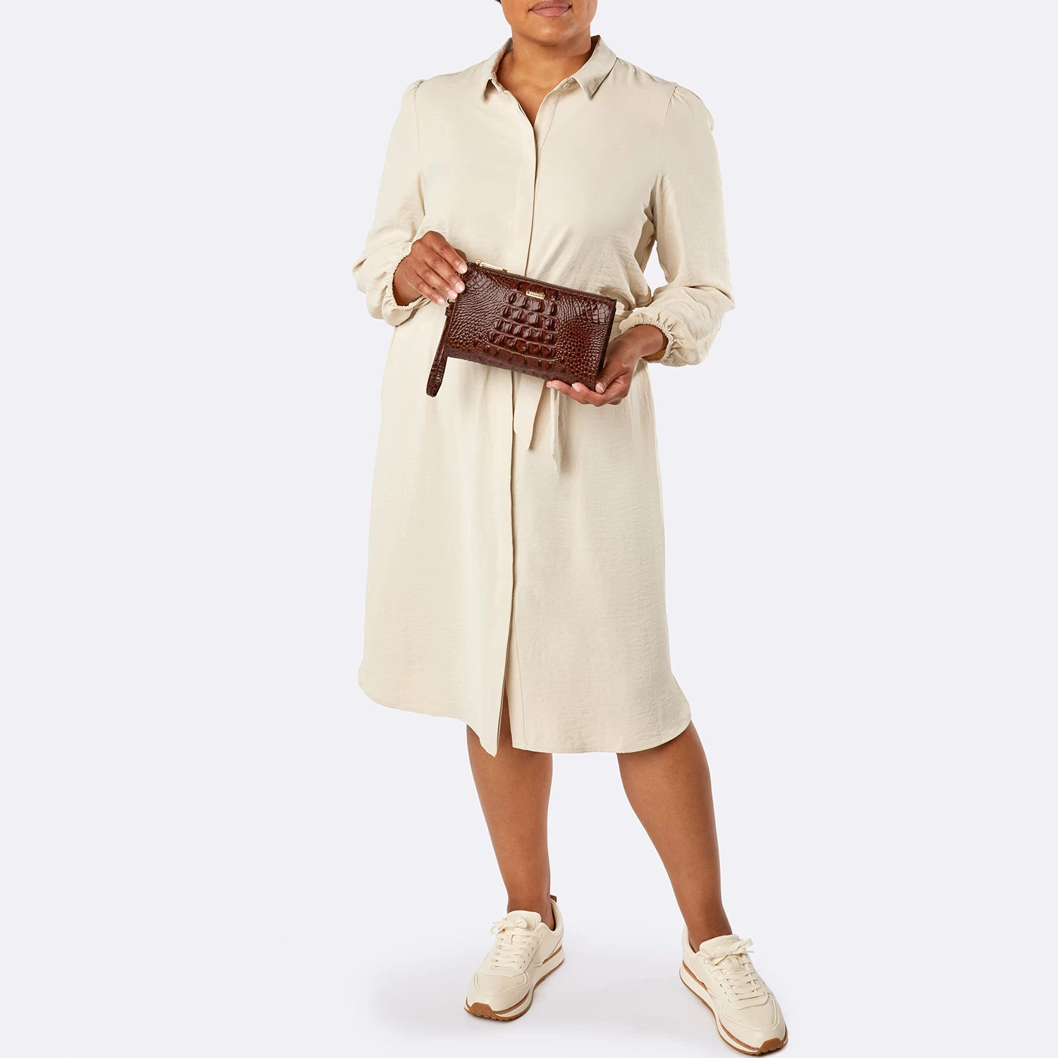 The Daisy Wristlet is a trim rectangular style that you can wear as a wristlet or tuck into a larger bag. An interior zip pocket holds your change and allows you to keep every last inch organized.