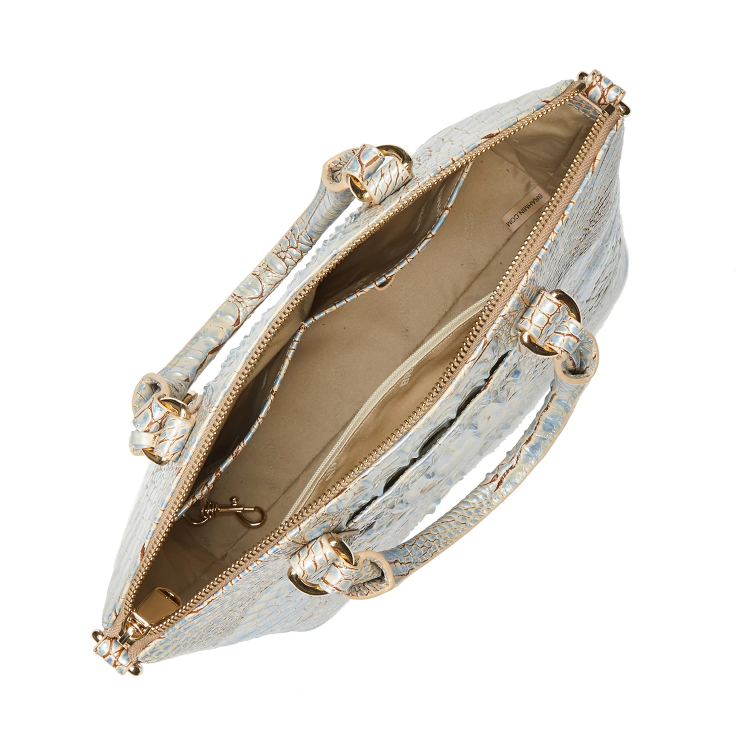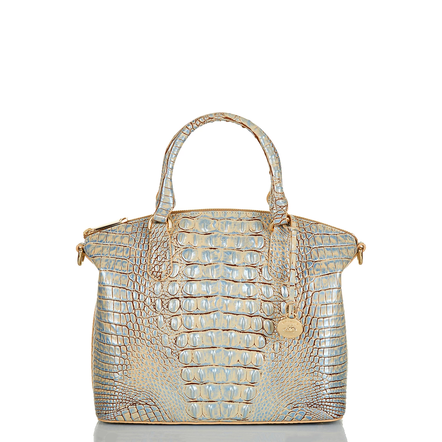 Featured in Blue Haze Melbourne, a soft blue inspired by distressed denim. Blue Haze taps into the trend of washed, vintage denim with a combination of pale blues and soft neutrals. This easy color combo pairs well with all your seasonal favorites. Made with genuine croc-embossed leather.