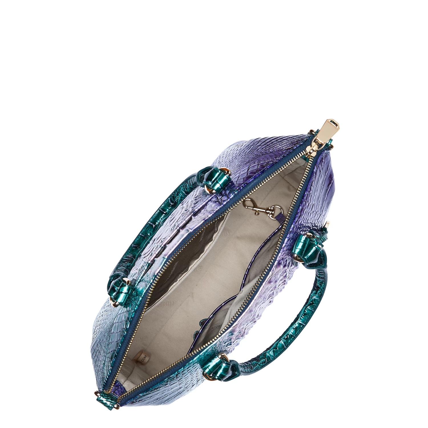 Featured in Enchanted Ombre Melbourne, a mystical and unique asymmetrical ombre that showcases a pink pearl center with bold purple and rich teal tones towards the edge. Made with genuine croc-embossed leather.