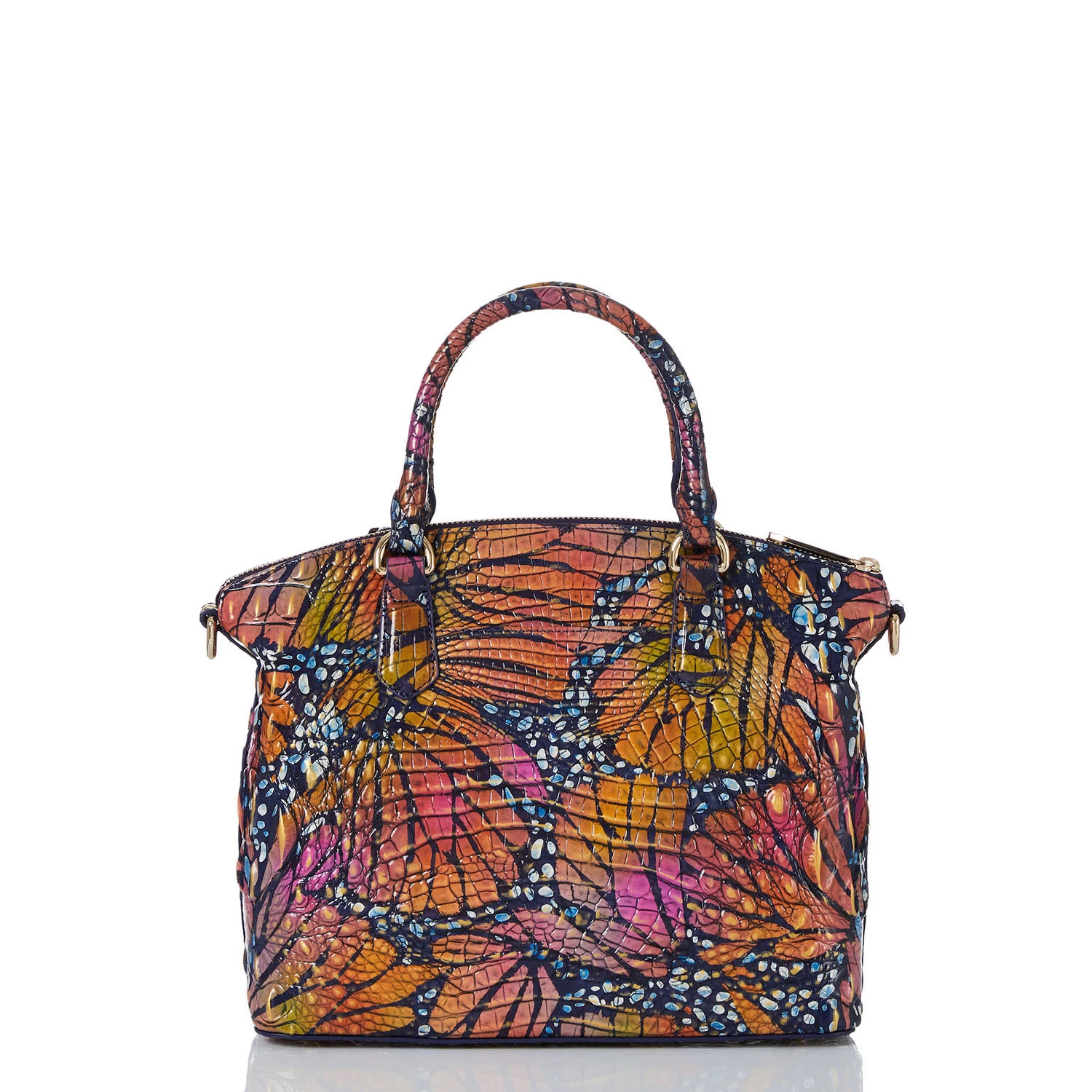 Featured in Flutter Melbourne, a whimsical, imaginative print that will instantly brighten your mood. The combination of bold and warm colors captures the playfulness of the season while the navy base allows for effortless versatility. Made with genuine croc-embossed leather.