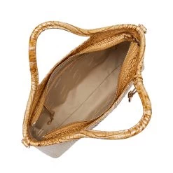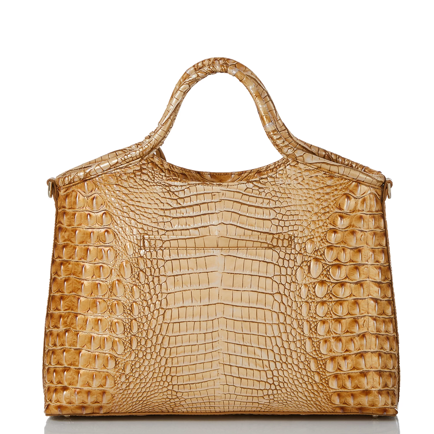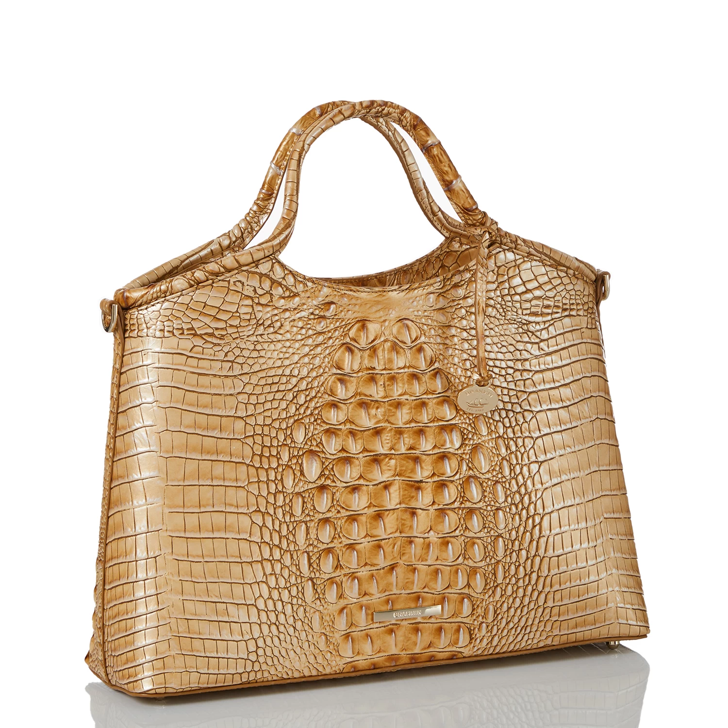 The Elaine is a statement-making satchel inspired by vintage Brahmin pieces. Equipped with a spacious interior and organizational pockets aplenty, carry everything you need by the comfortable rolled handles, or attach the adjustable shoulder strap for hands-free styling on the go.