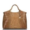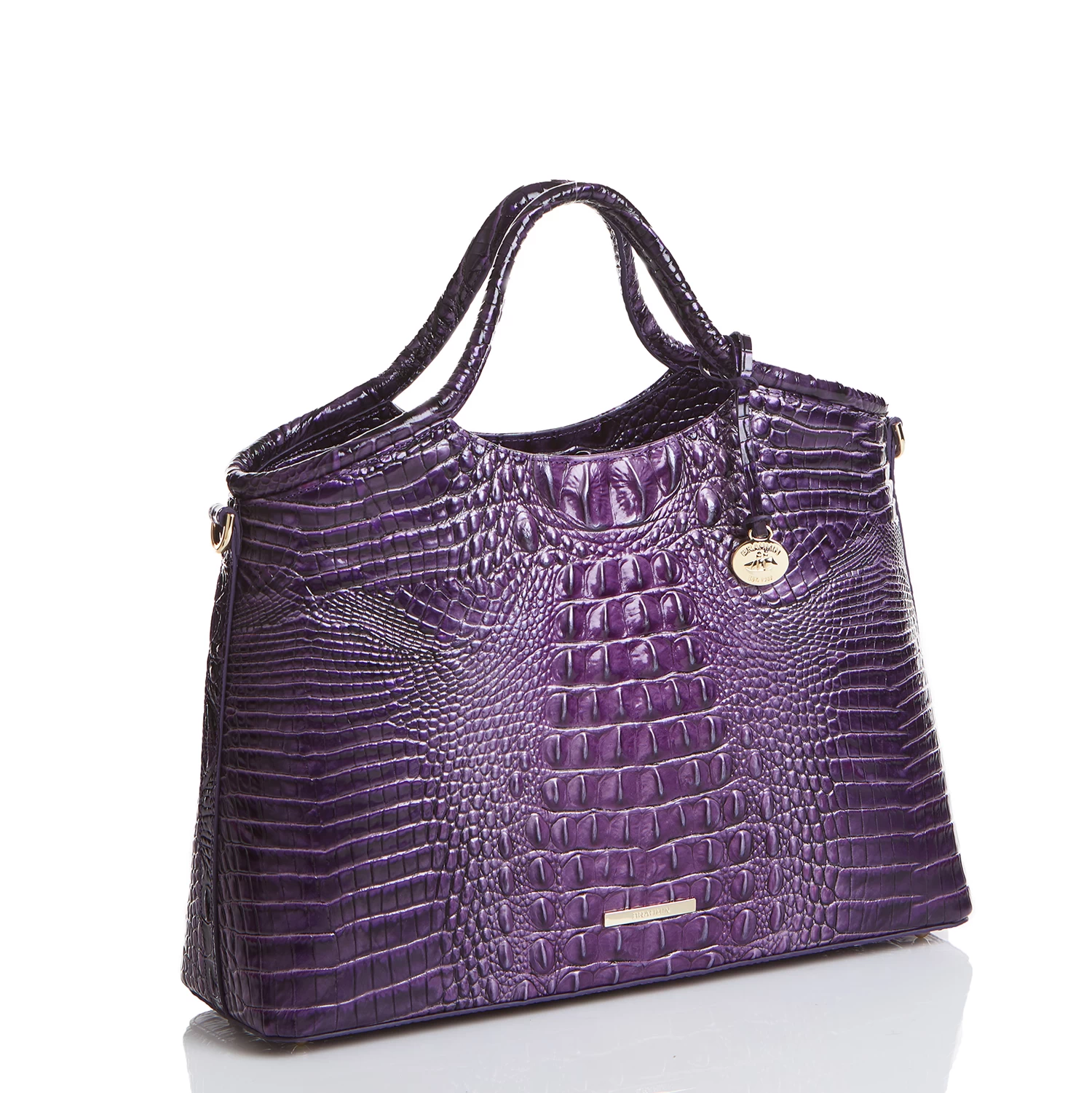 The Elaine is a statement-making satchel inspired by vintage Brahmin pieces. Equipped with a spacious interior and organizational pockets aplenty, carry everything you need by the comfortable rolled handles, or attach the adjustable shoulder strap for hands-free styling on the go.