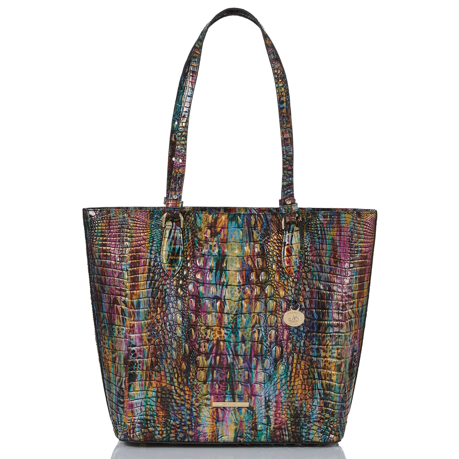 Featured in Virtuous Melbourne, a radiant spectrum of color. This features a rich array of hues and elevated artistry with an abstract micro-animal print that offers a fresh perspective. Made with genuine leather.