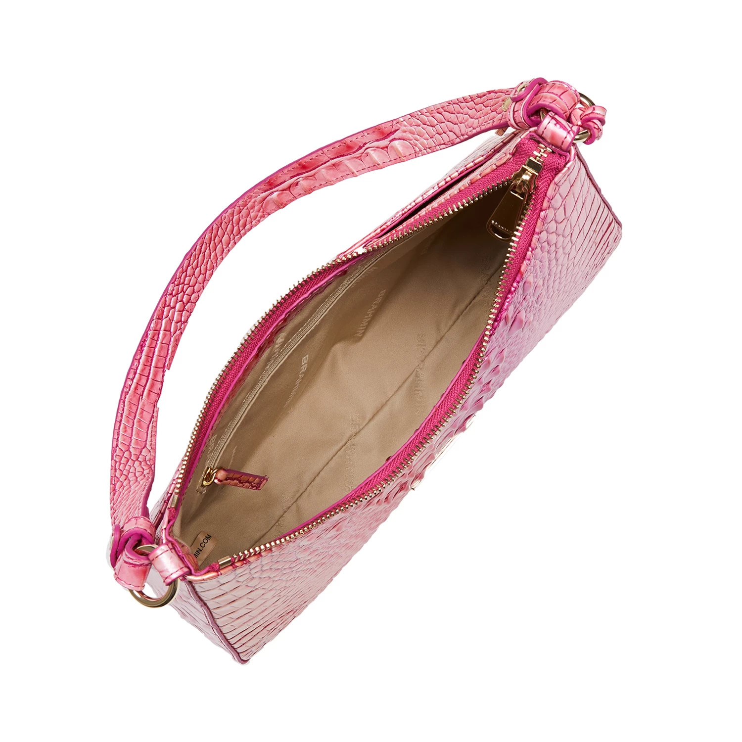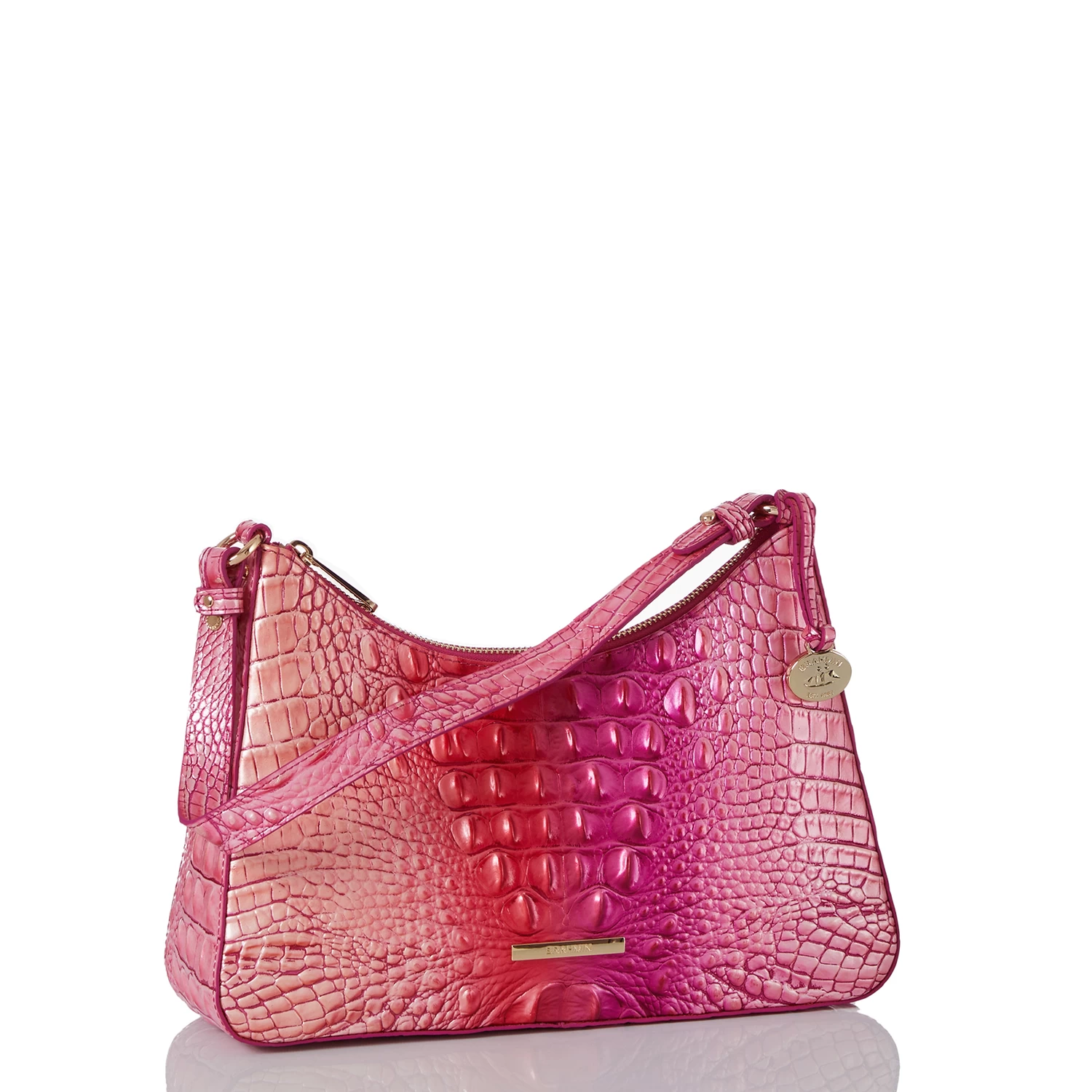 Featured in Cupid Ombre Melbourne, a crush-worthy combination of color. This asymmetrical ombre is a powerful blend of pink tones that you’ll fall head over heels for. Soft coral blends with magnetic magenta and a sweet bubblegum pink for a one-of-a-kind ombre. Made with genuine croc-embossed leather.