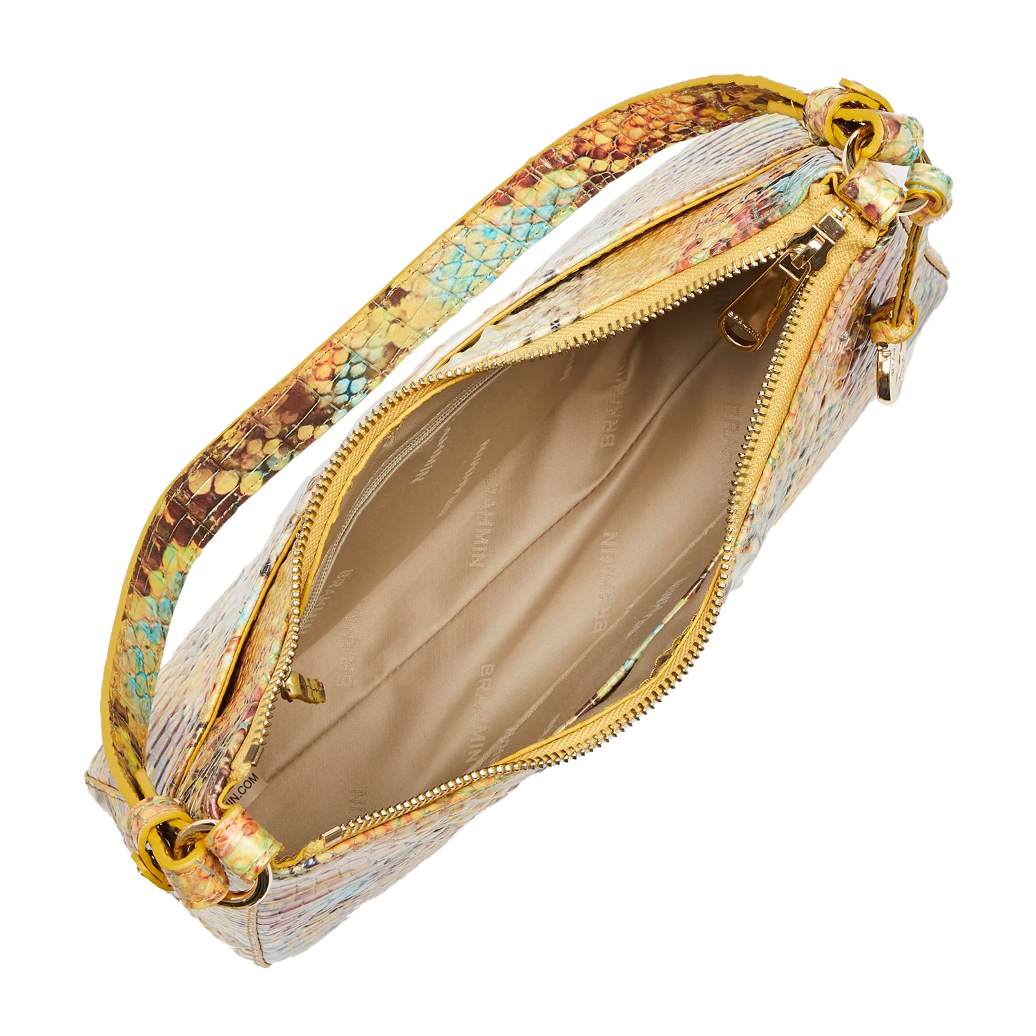 Featured in Sunny Viper Melbourne, a colorful new take on snake. Sunny Viper embraces the warm energy of the season with a vibrant array of colors. From the warmth of mango to the energetic pop of blue, this brings together our favorite new hues of the season. Made with genuine croc-embossed leather.