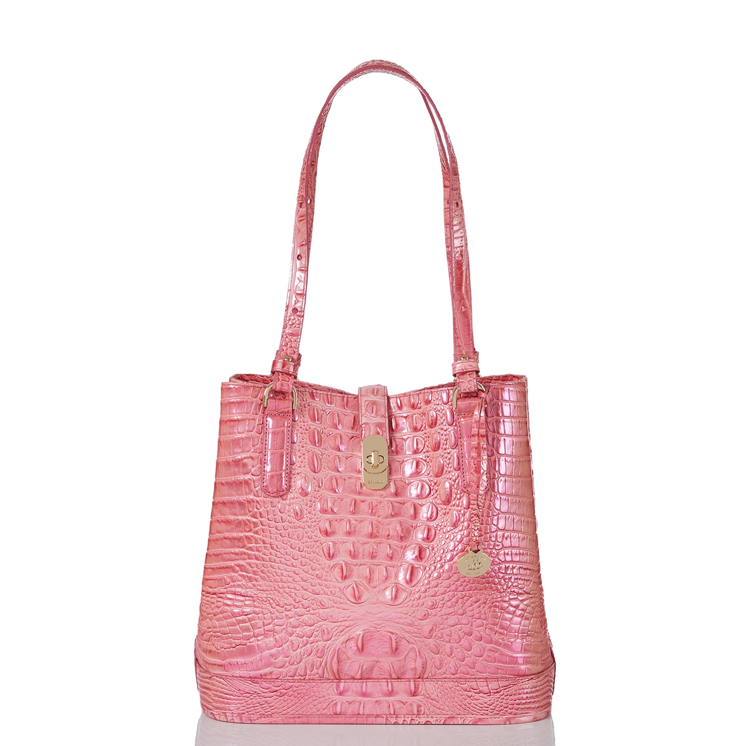 The Fiora is a chic bucket bag inspired by an archival Brahmin style. Reimagined with modern details, this bucket bag features adjustable tote straps that rest comfortably on your shoulder. Various interior compartments provide plenty of storage for your essentials and more, while an exterior back slide-in pocket offers the perfect place to store your phone or other small device. A stylish turn-lock closure adds an elevated touch.
