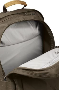 Simple and durable everyday backpack made from durable G-1000 HeavyDuty Eco in recycled polyester and organic cotton. Simple design and practical details make it perfect for commuting or everyday outings. It has a separate, padded pocket for a laptop computer (up to 15 inches in size). A little fleece-lined pocket with a zipper has room for sunglasses, a phone etc. Two spacious zippered compartments with internal pockets give flexibility when you want to keep your gear organized. There is also a zippered front pocket and two side pockets for drink bottles and other items you want to keep close to hand. Comfortable padded shoulder straps and foam frame sheet. Handle with leather grip. Volume: 28 liters.