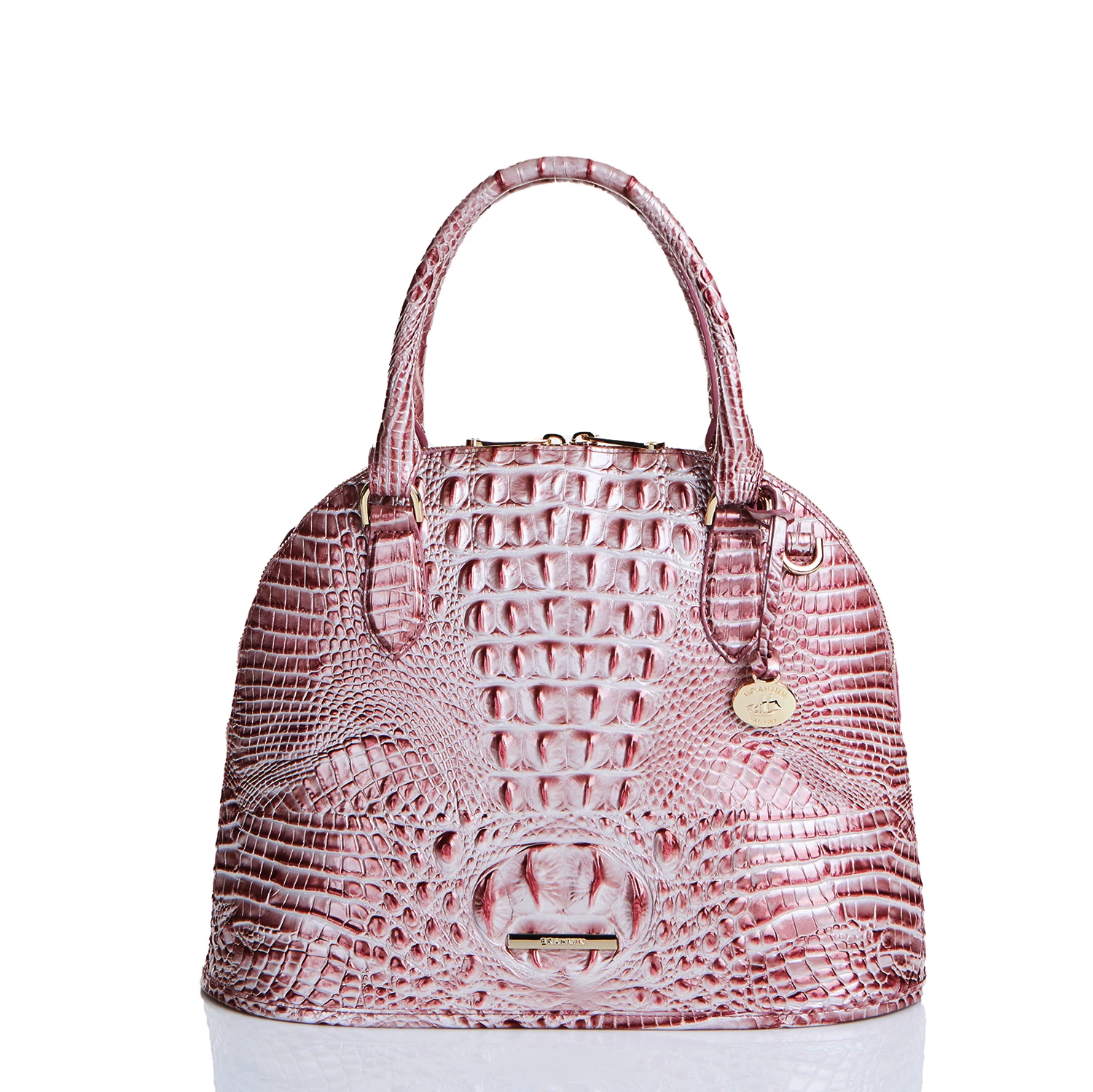 Featured in Pink Icing Melbourne, a soft, pearlescent pink. This offers a multi-dimensional pink that shines like delicate silk. Made with genuine croc-embossed leather.
