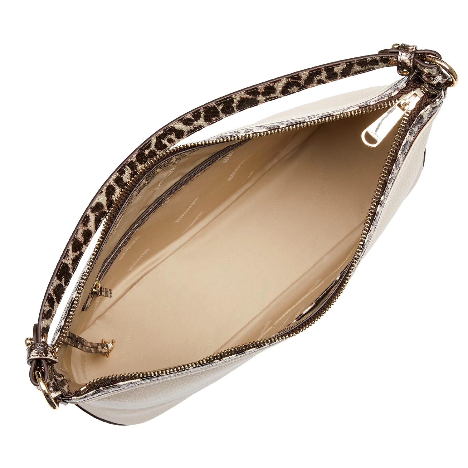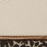 Featured in Ivory Iguana Garces, a fresh take on neutral with a pearlized finish. The ivory pebble leather has a pearlescent glow and gets accented with a leopard print trim. This creative combination is perfect for adding a touch of interest to all your ensembles. Made with genuine leather.
