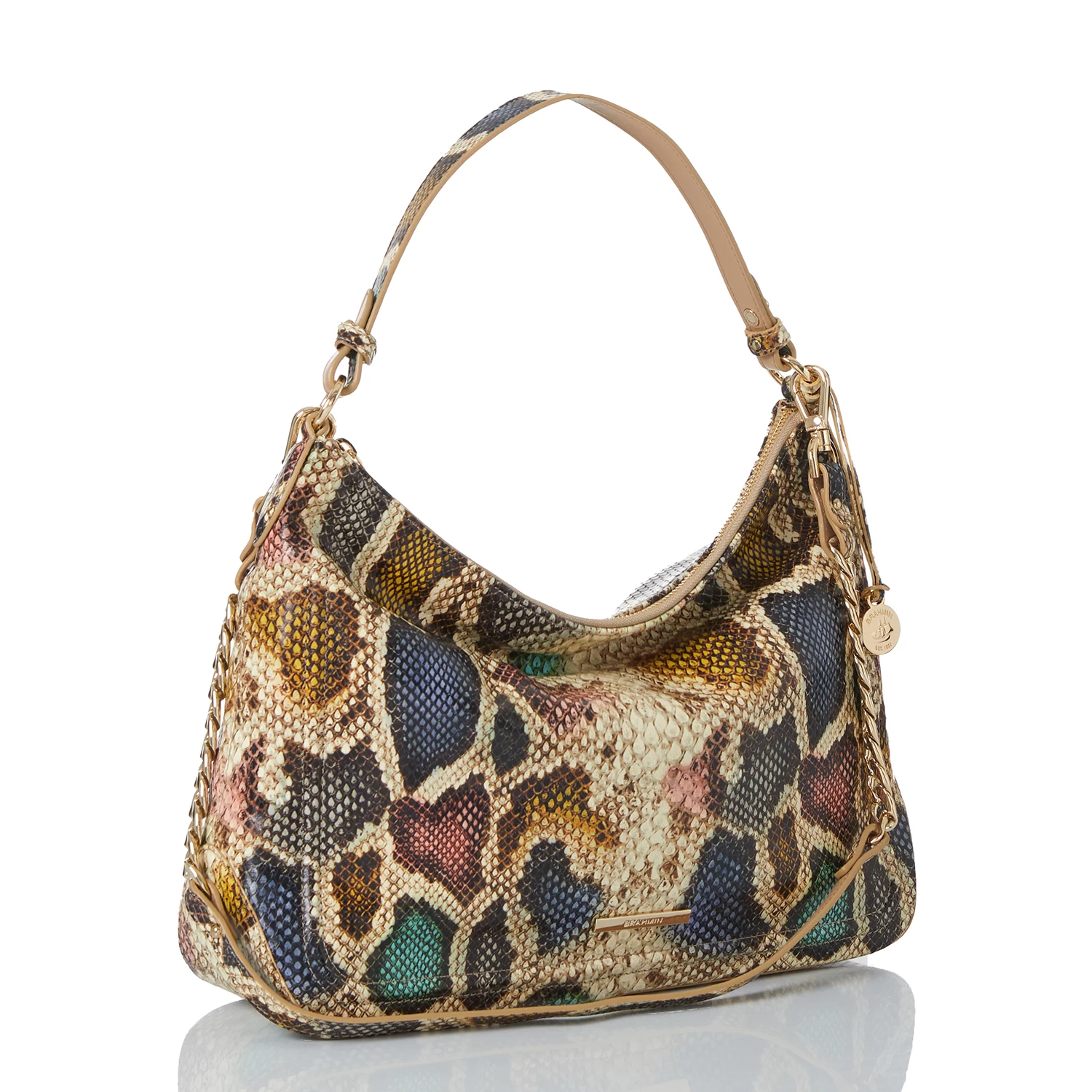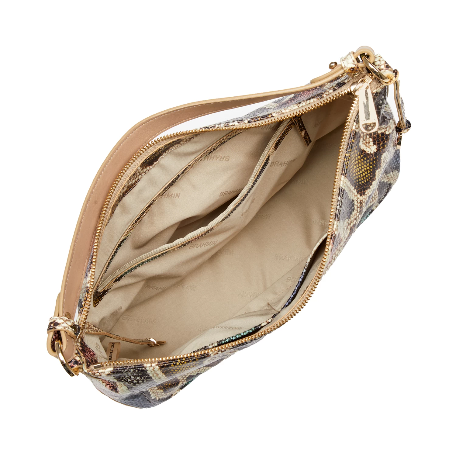 Featured Multi Caloosa, an Italian multi-colored snake with pops of neutral for versatility. The vibrance and energy of the colors is well-balanced with the soft, neutral base. Carefully placed trapunto detailing adds luxury to the look. Made with genuine leather.