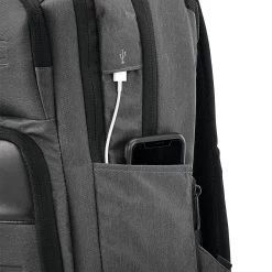 - Pass-through sleeve back panel allows the backpack to attach to a luggage handle
