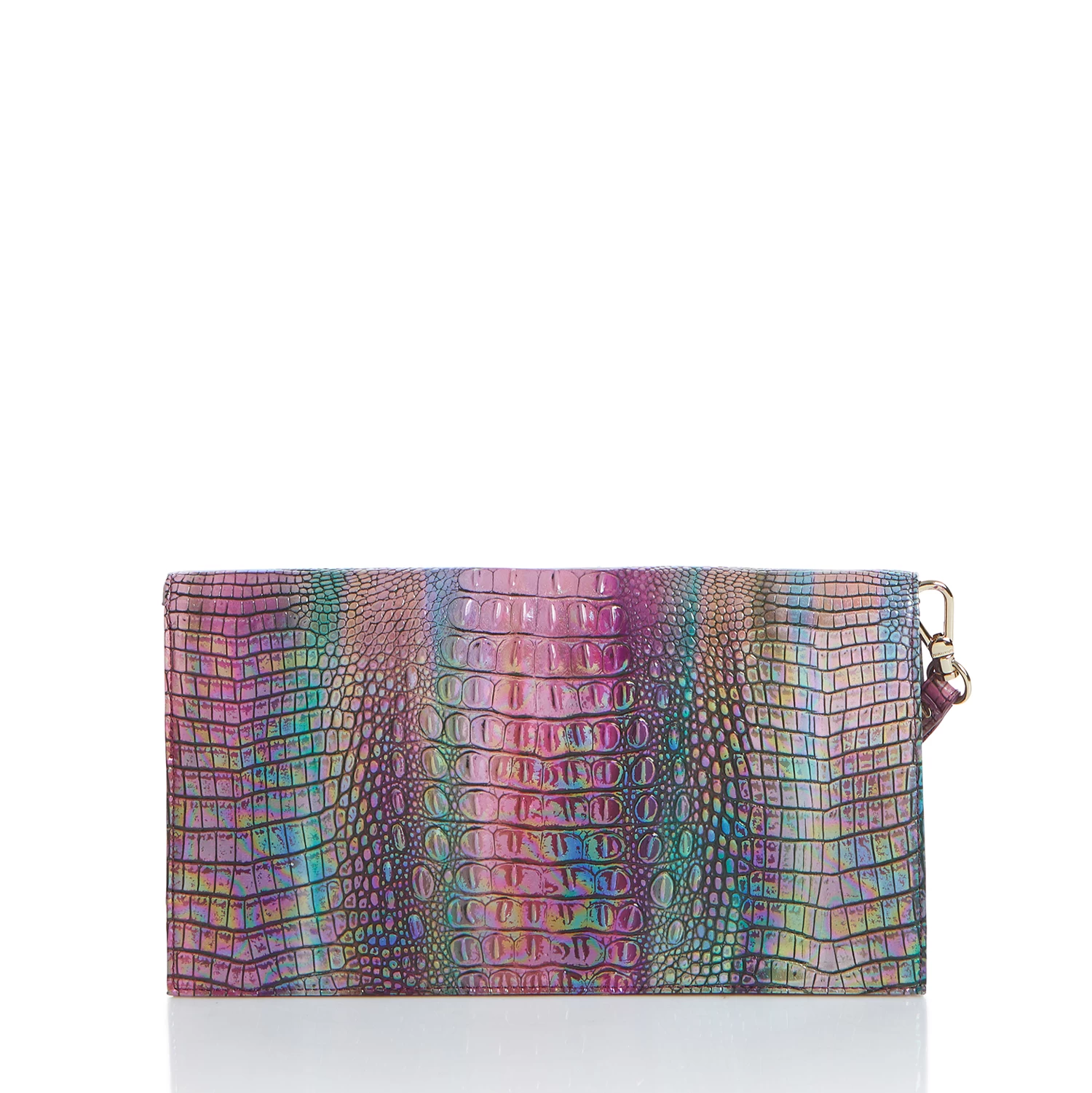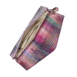 Featured in Magical Mini Melbourne, a deeply artistic print reminiscent of the beauty found in watercolor painting. This magical mix of color brings together all our favorite colors from the season. The foil finish radiates with a beautiful shine that will elevate any outfit. Made with genuine croc-embossed leather.