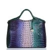 Featured in Fanciful Melbourne, an abstract print that brings the bold, exuberant energy of summer to life with saturated colors. The vibrant mix of electric turquoise and hot pink is a lively expression of creativity while the touch of silver instantly elevates. Made with genuine croc-embossed leather. Due to the nature of the materials used, each Brahmin product is one-of-a-kind. Variances in the pattern and texture of your bag may occur.