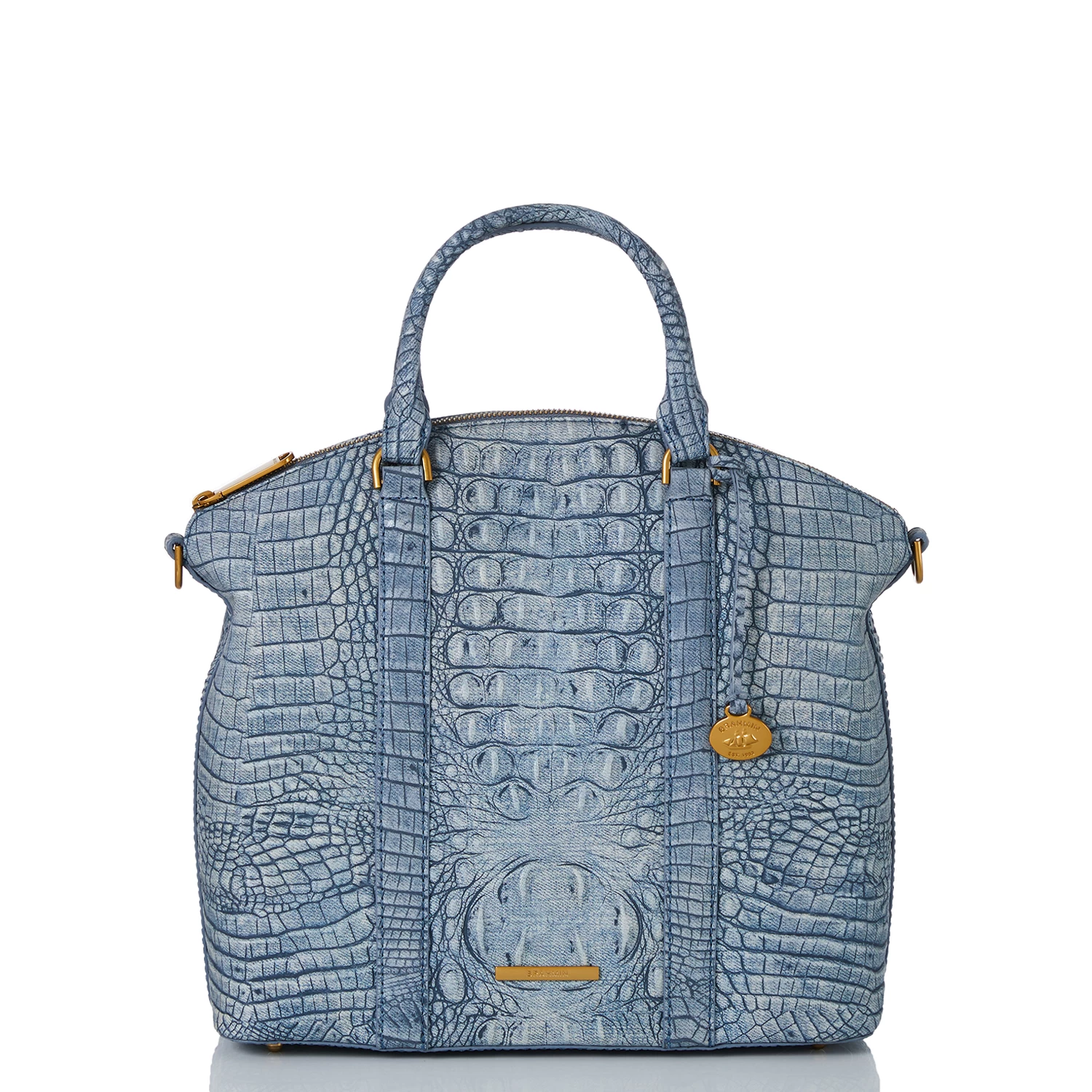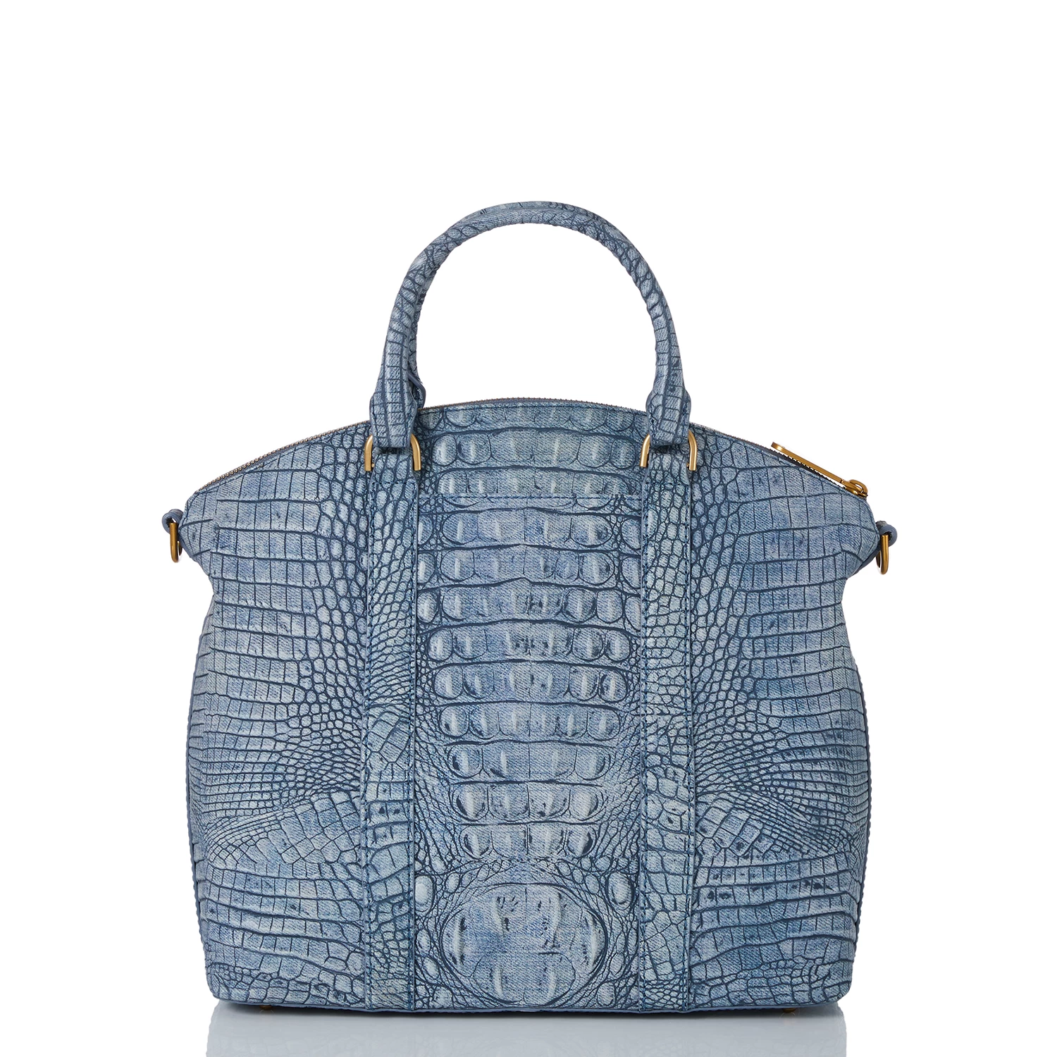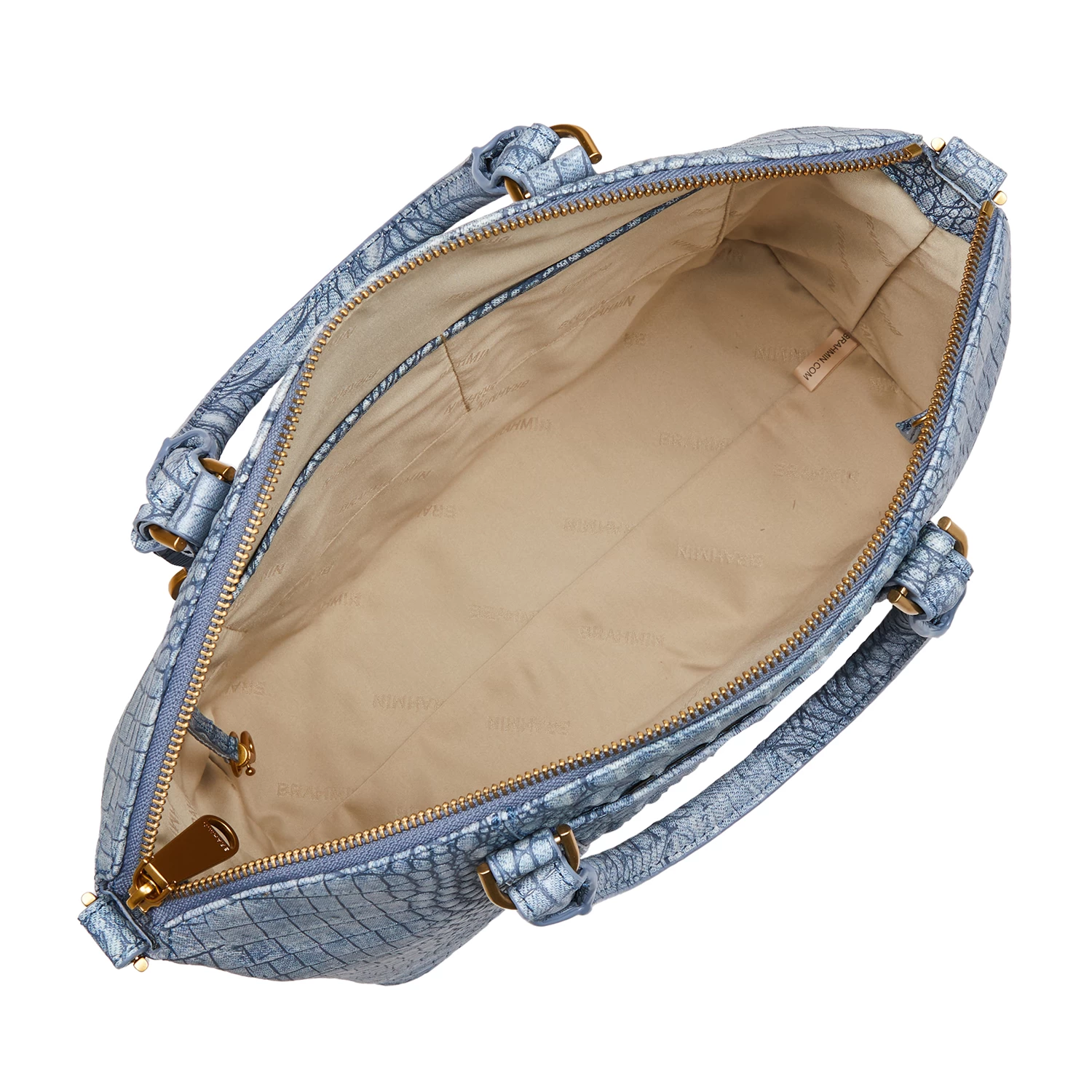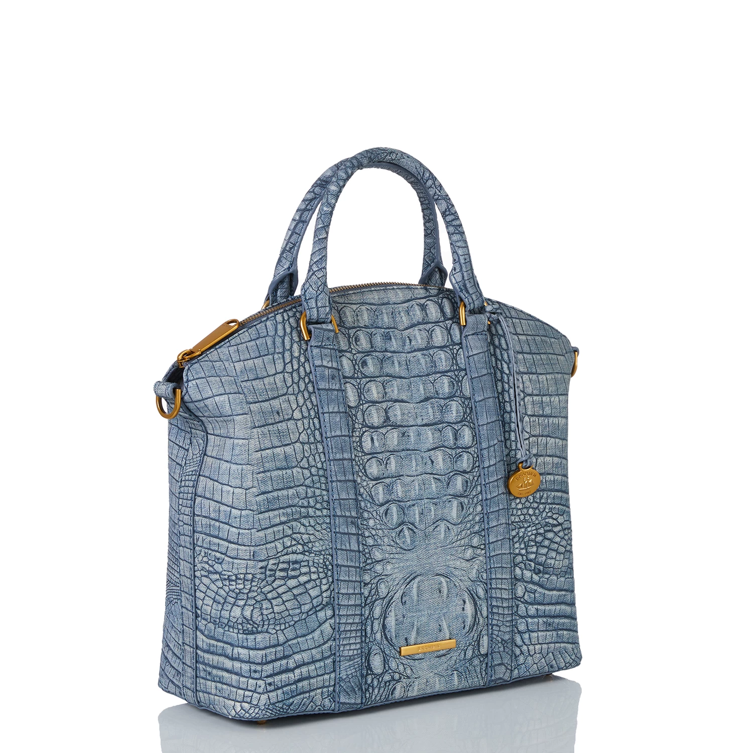 Featured in Light Denim Tetra, our take on the denim trend. This collection is crafted with a soft, easy leather and embossed with a classic Melbourne croc. The soft leather makes this effortlessly casual for everyday ease. The rich blues are inspired by vintage denim and the brass hardware elevates. Thick stitching mimics the details on denim jeans. Made with genuine croc-embossed leather.