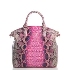 Featured in Pink Cobra Ombre Melbourne, a fan-favorite print (with a pop!). A fresh twist on trending neons, Pink Cobra Ombre features a brilliant bubblegum pink pop color with accents of purple. The colors are nods to the 90s, delivering a bubbly, energetic take on a snake print that adds energy to the season. Made with genuine croc-embossed leather.