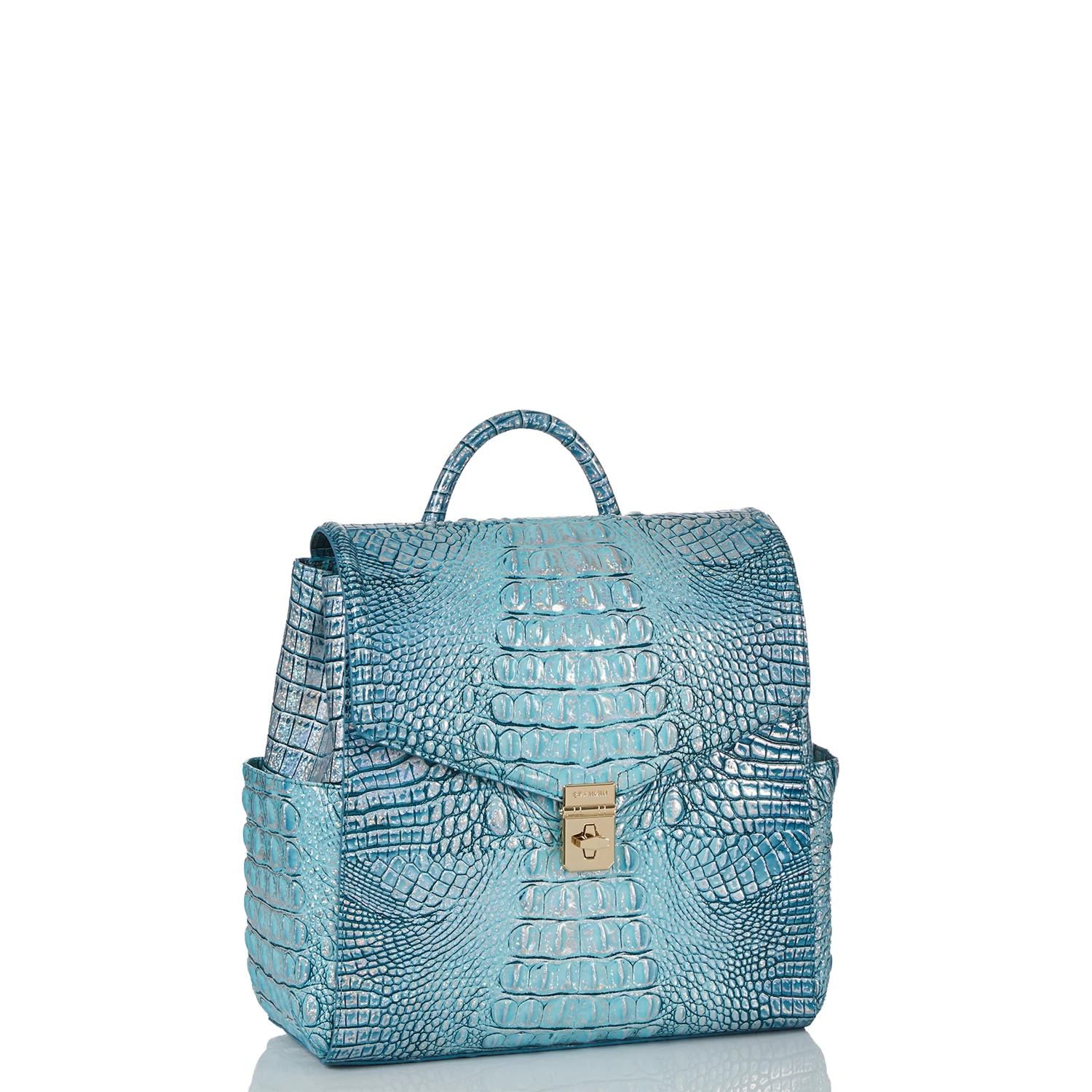 Featured in Arctic Blue Melbourne, an effervescent pale blue that will add some sparkle to your season. The light blue base transitions into a rich, darker variation and is accented with metallic silver tipping for added elevation. The irresistible iridescence lends luxury to any look (perfect for the season of celebrating). Made with genuine croc-embossed leather.