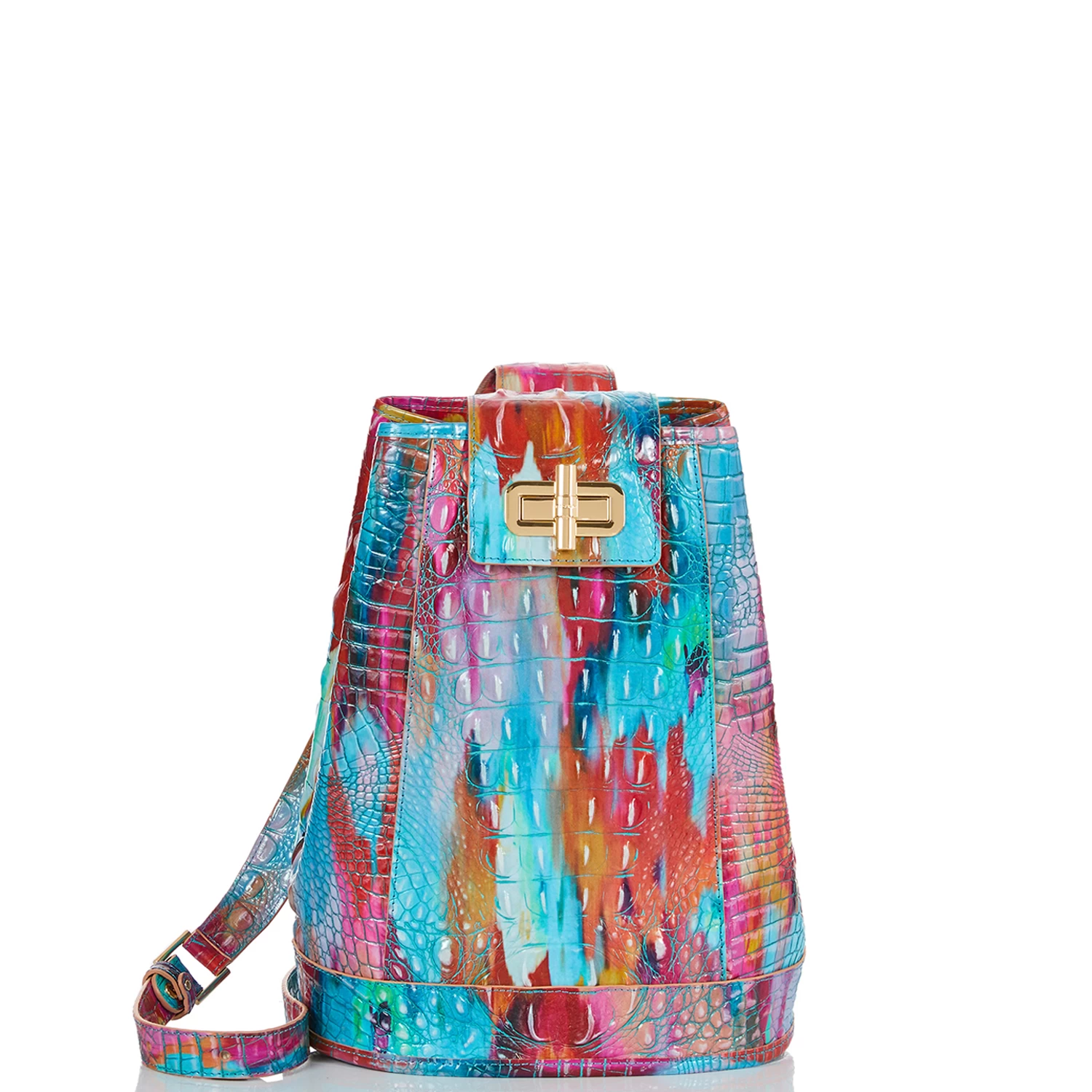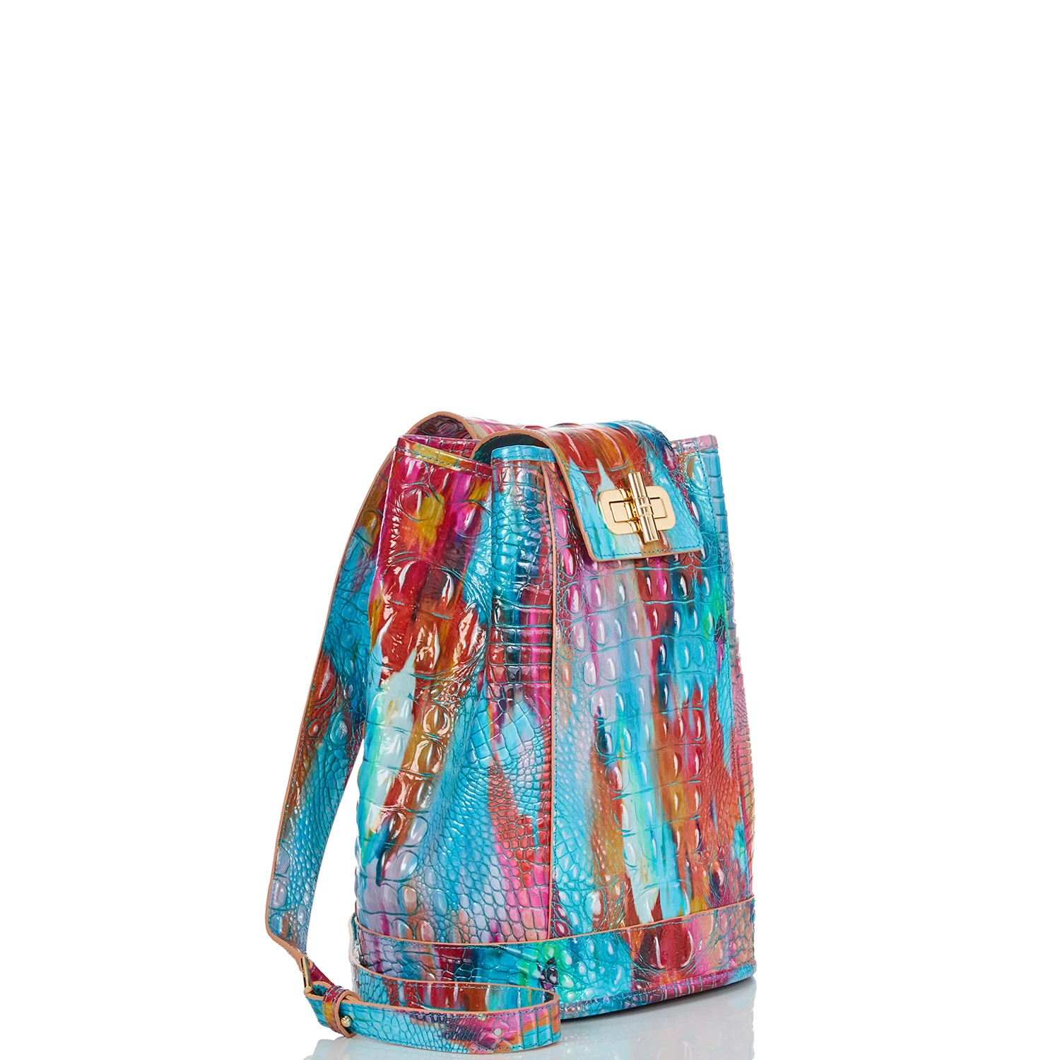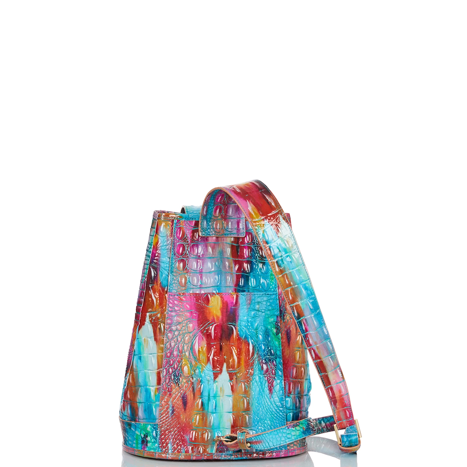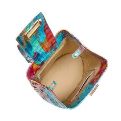 Featured in Fanciful Melbourne, an abstract print that brings the bold, exuberant energy of summer to life with saturated colors. The vibrant mix of electric turquoise and hot pink is a lively expression of creativity while the touch of silver instantly elevates. Made with genuine croc-embossed leather. Due to the nature of the materials used, each Brahmin product is one-of-a-kind. Variances in the pattern and texture of your bag may occur.