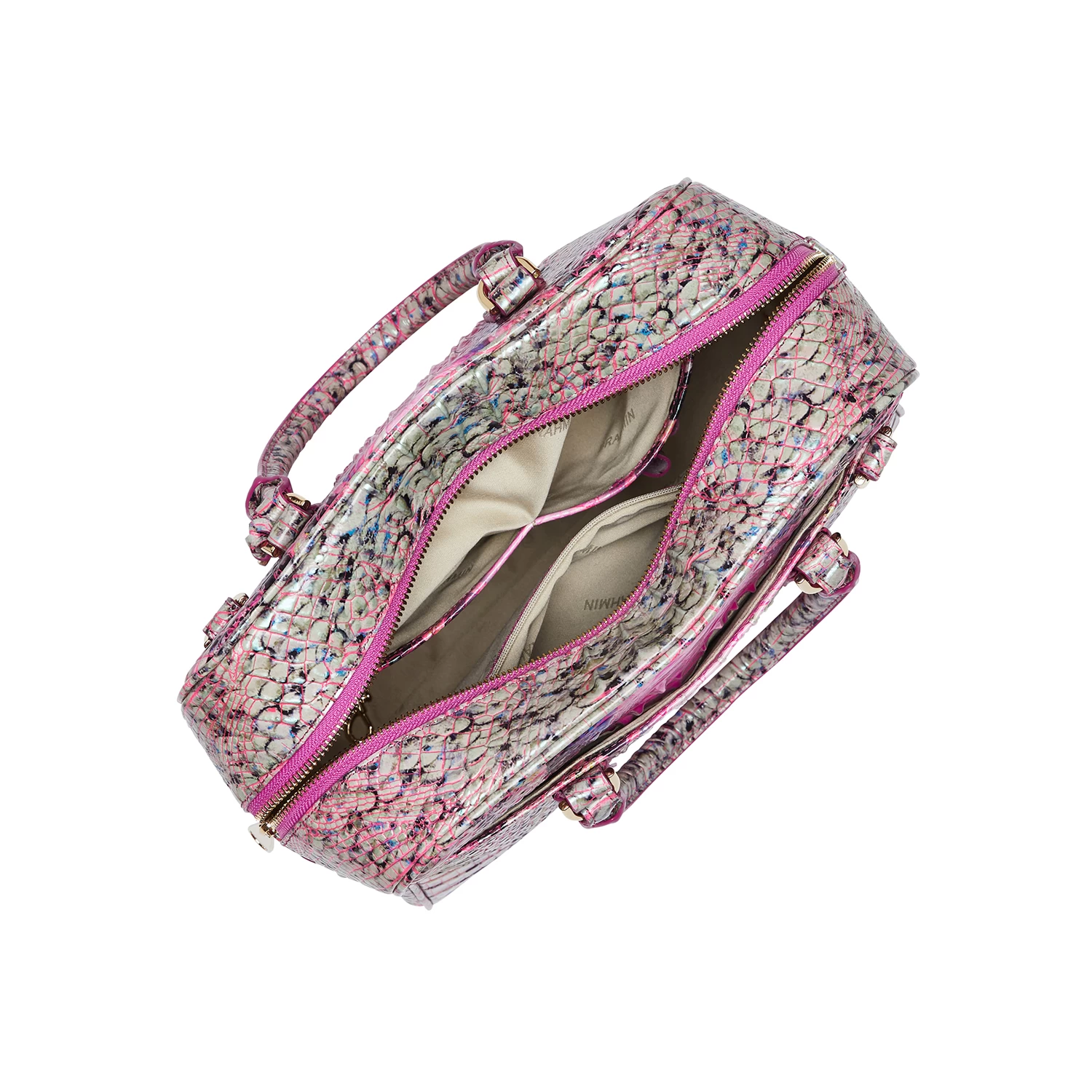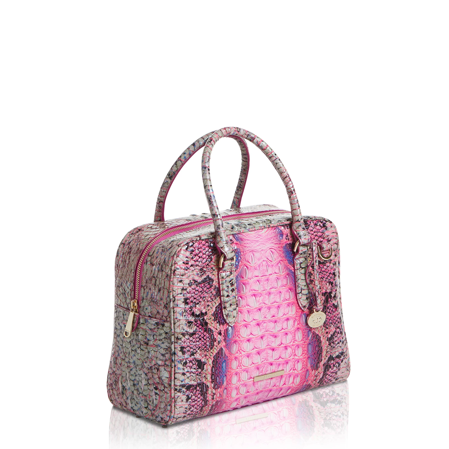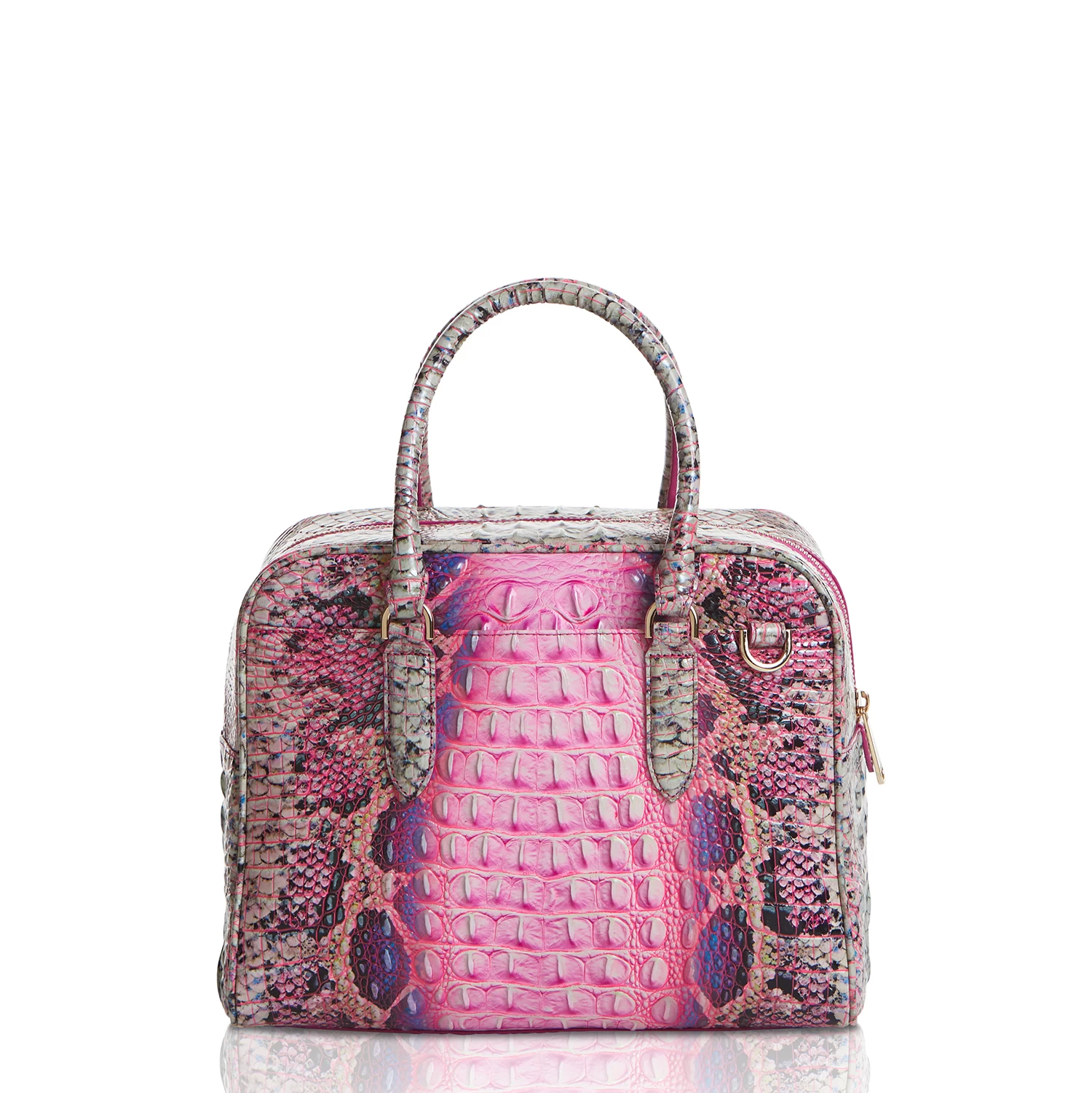Featured in Pink Cobra Ombre Melbourne, a fan-favorite print (with a pop!). A fresh twist on trending neons, Pink Cobra Ombre features a brilliant bubblegum pink pop color with accents of purple. The colors are nods to the 90s, delivering a bubbly, energetic take on a snake print that adds energy to the season. Made with genuine croc-embossed leather.