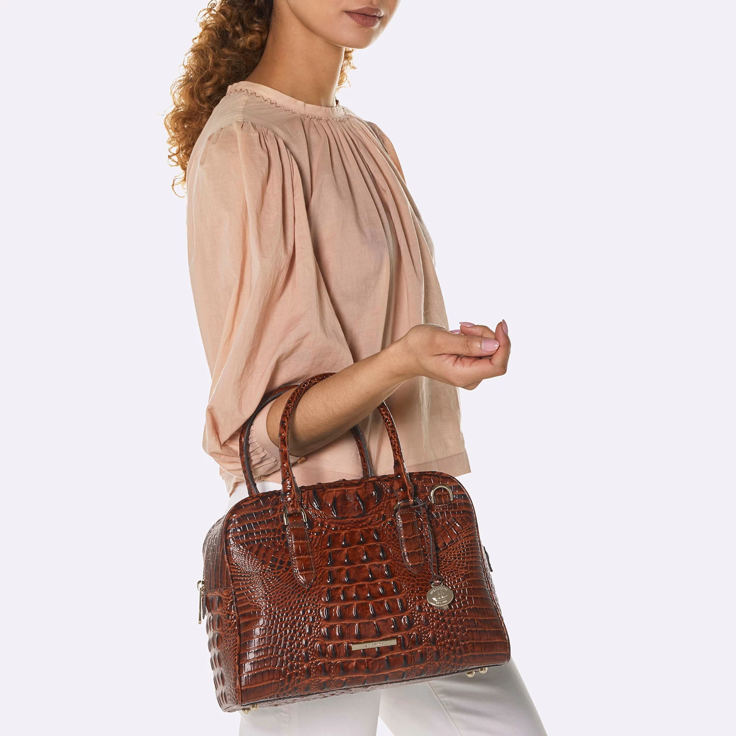 The Marissa is a statement-making satchel with a soft dome silhouette and wide zip top opening. A roomy interior and multiple pockets keep your essentials organized, from pens to makeup and more. Stash your phone in the back slide-in pocket for easy access (so you’ll be ready to hop on a work call or answer a quick text from your BFF). Carry by the comfy rolled handles or with the adjustable strap for an effortless hands-free look.