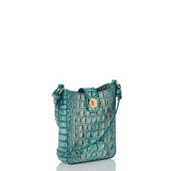 Featured in Mineral Blue Melbourne, a fresh, calming mix of color that instantly captivates. This imaginative combination of color was inspired by the hues, texture, and natural shine found in turquoise stones. Made with genuine croc-embossed leather.