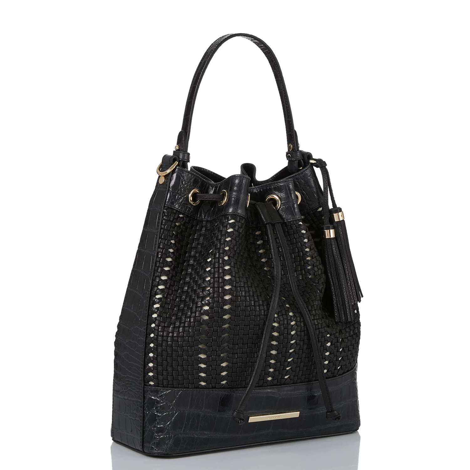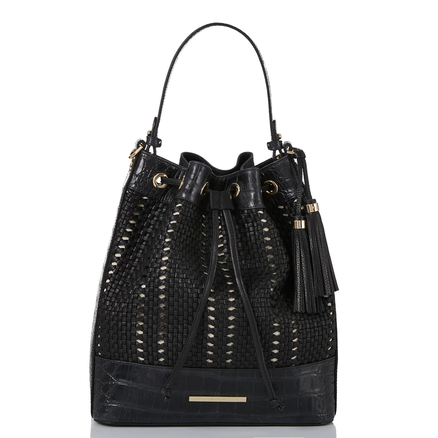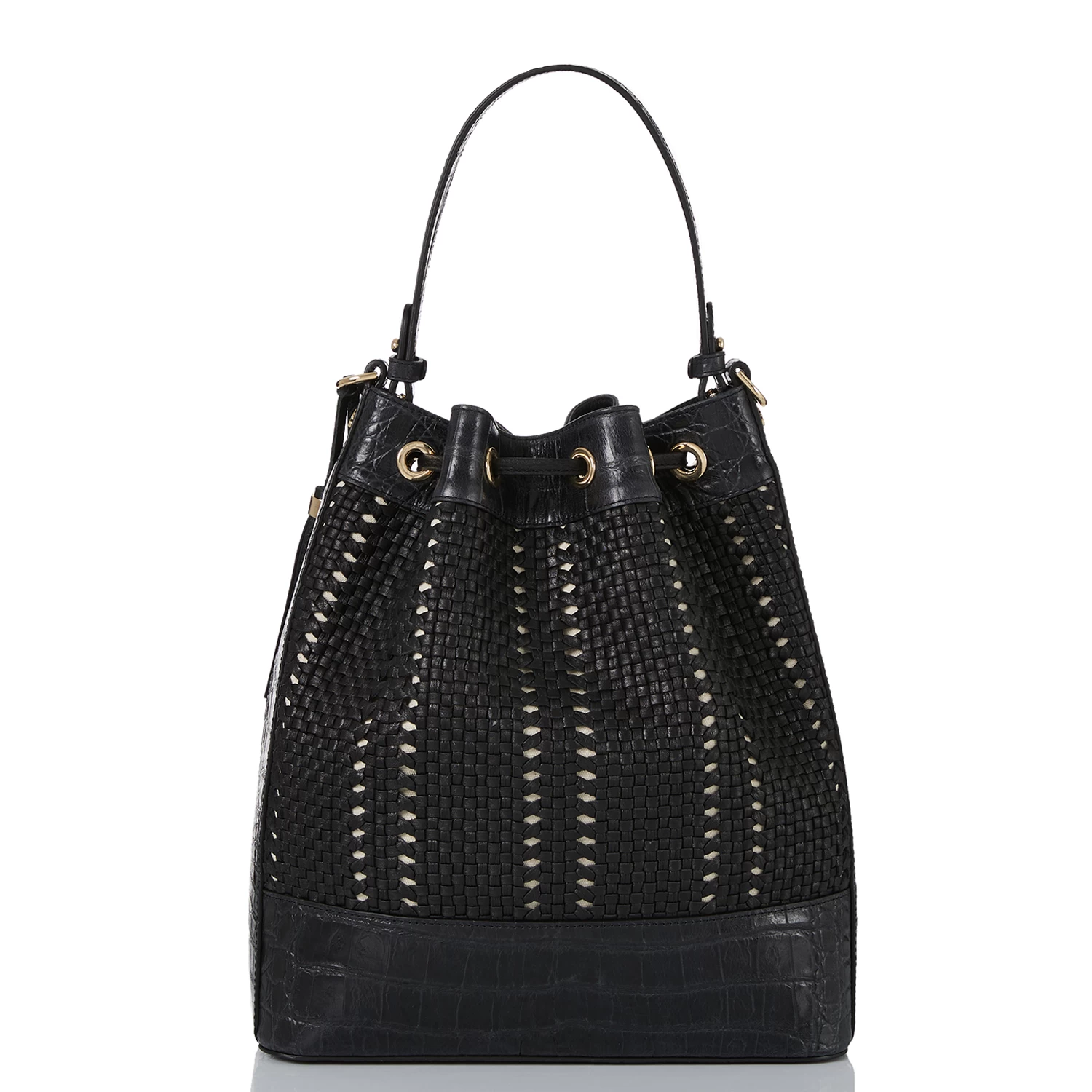 Featured in Black Cascata, a luxurious combination of dynamic fresh textures. This pairs together a smooth black pebble leather with a tonal flat croc and a soft canvas backing. The intricate woven detailing is casual yet sophisticated for an easy-to-wear must-have. Made with genuine leather.