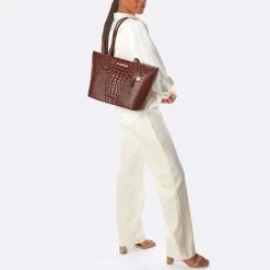 The Medium Asher Tote is a lightweight bag with plenty of interior space. This structured style is polished and practical, featuring Brahmin’s signature organizational details.