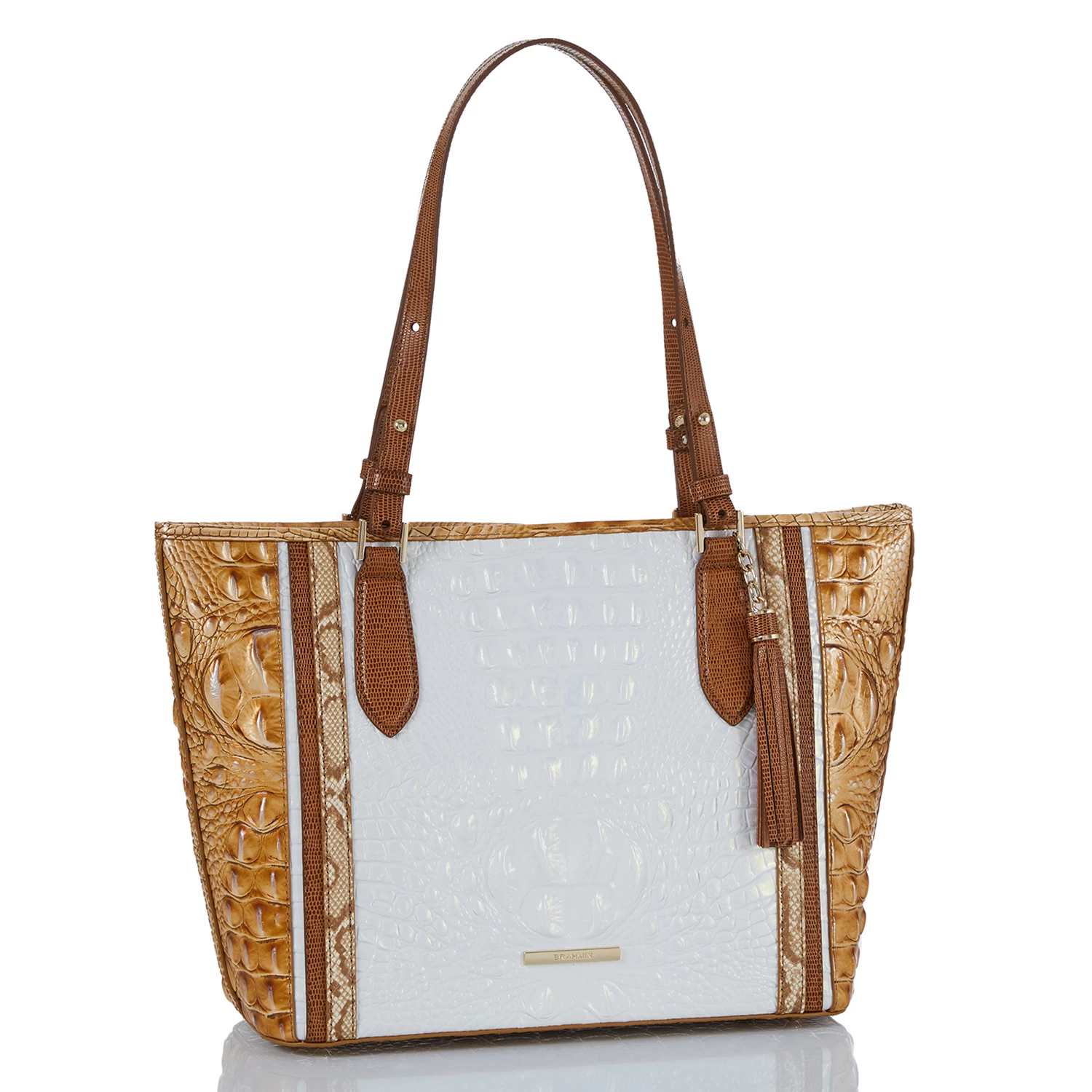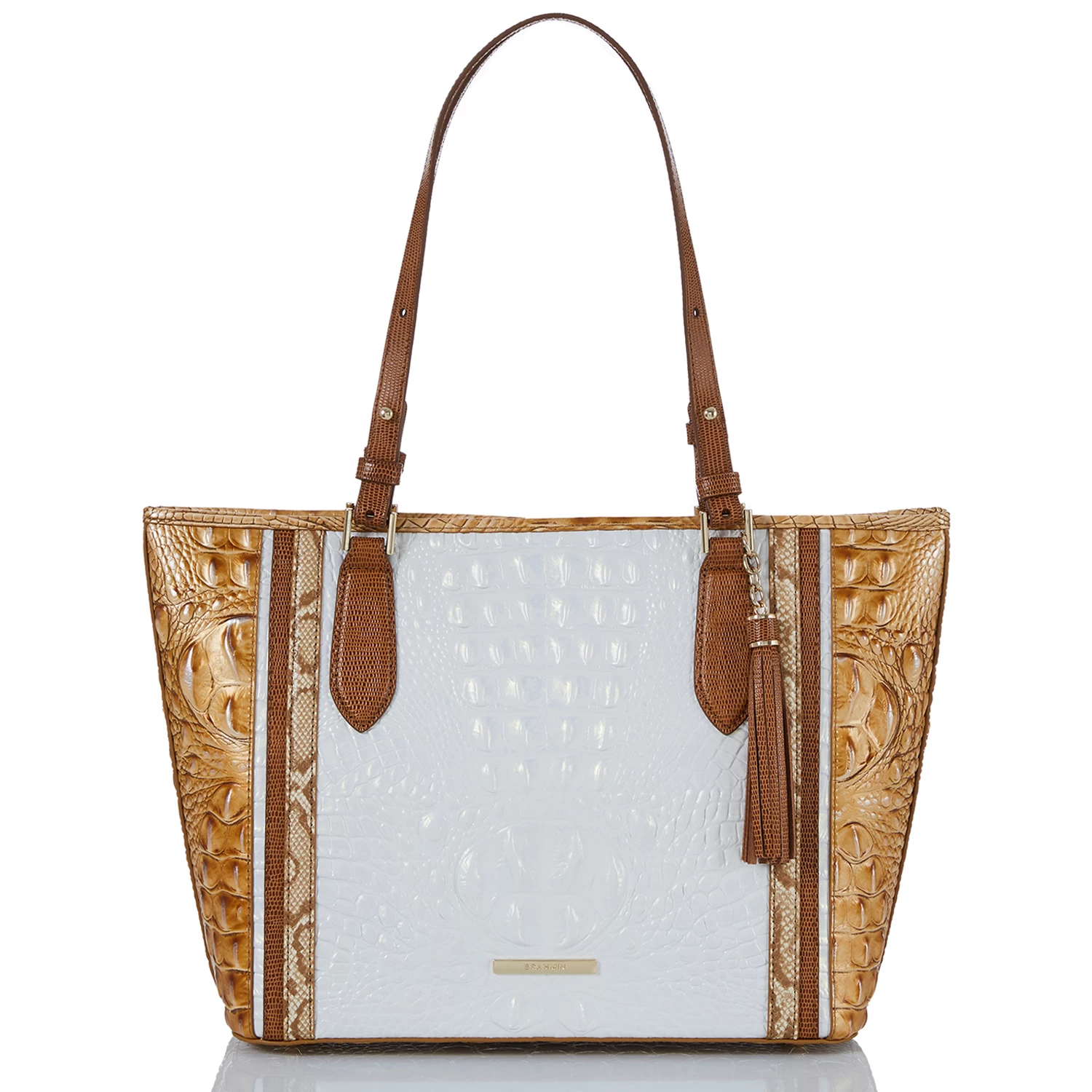 The Medium Asher Tote is a lightweight bag with plenty of interior space. This structured style is polished and practical, featuring Brahmin’s signature organizational details.