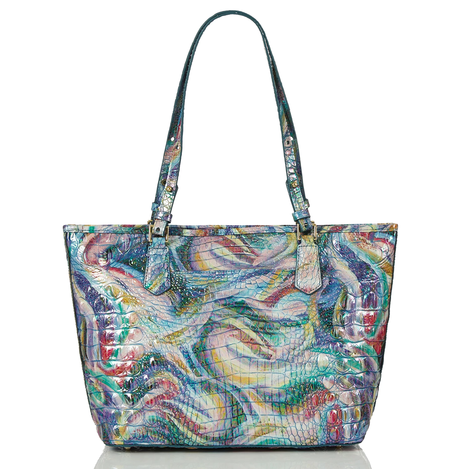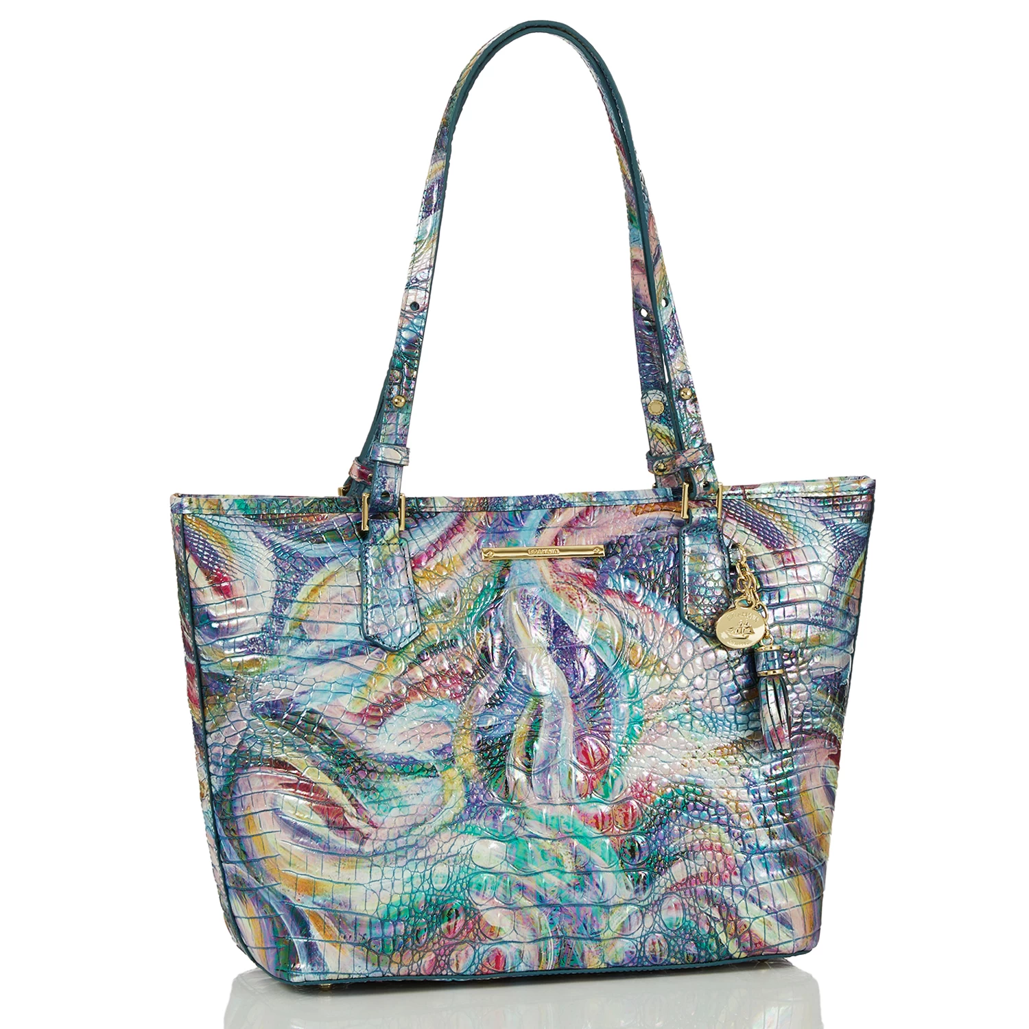 The Medium Asher Tote is a lightweight bag with plenty of interior space. This structured style is polished and practical, featuring Brahmin’s signature organizational details.