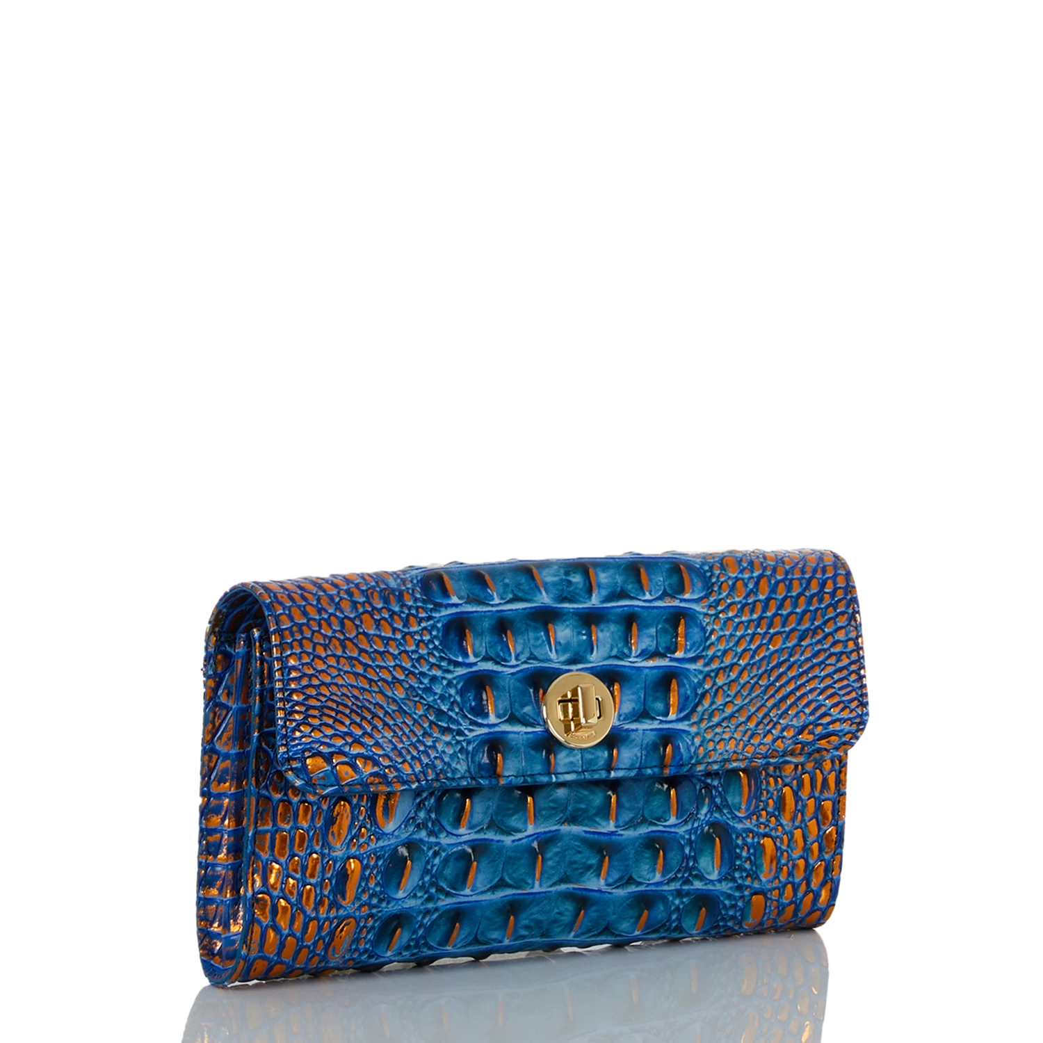 Featured in Deep Azure Melbourne, a saturated, dynamic blue. This deep, dazzling blue is accented with a copper metallic shimmer that brings eye-catching shine to warmer weather. Made with genuine croc-embossed leather.