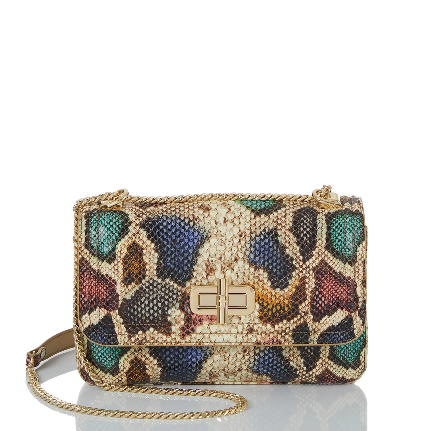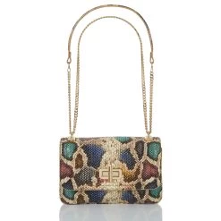 Featured Multi Caloosa, an Italian multi-colored snake with pops of neutral for versatility. The vibrance and energy of the colors is well-balanced with the soft, neutral base. Carefully placed trapunto detailing adds luxury to the look. Made with genuine leather.