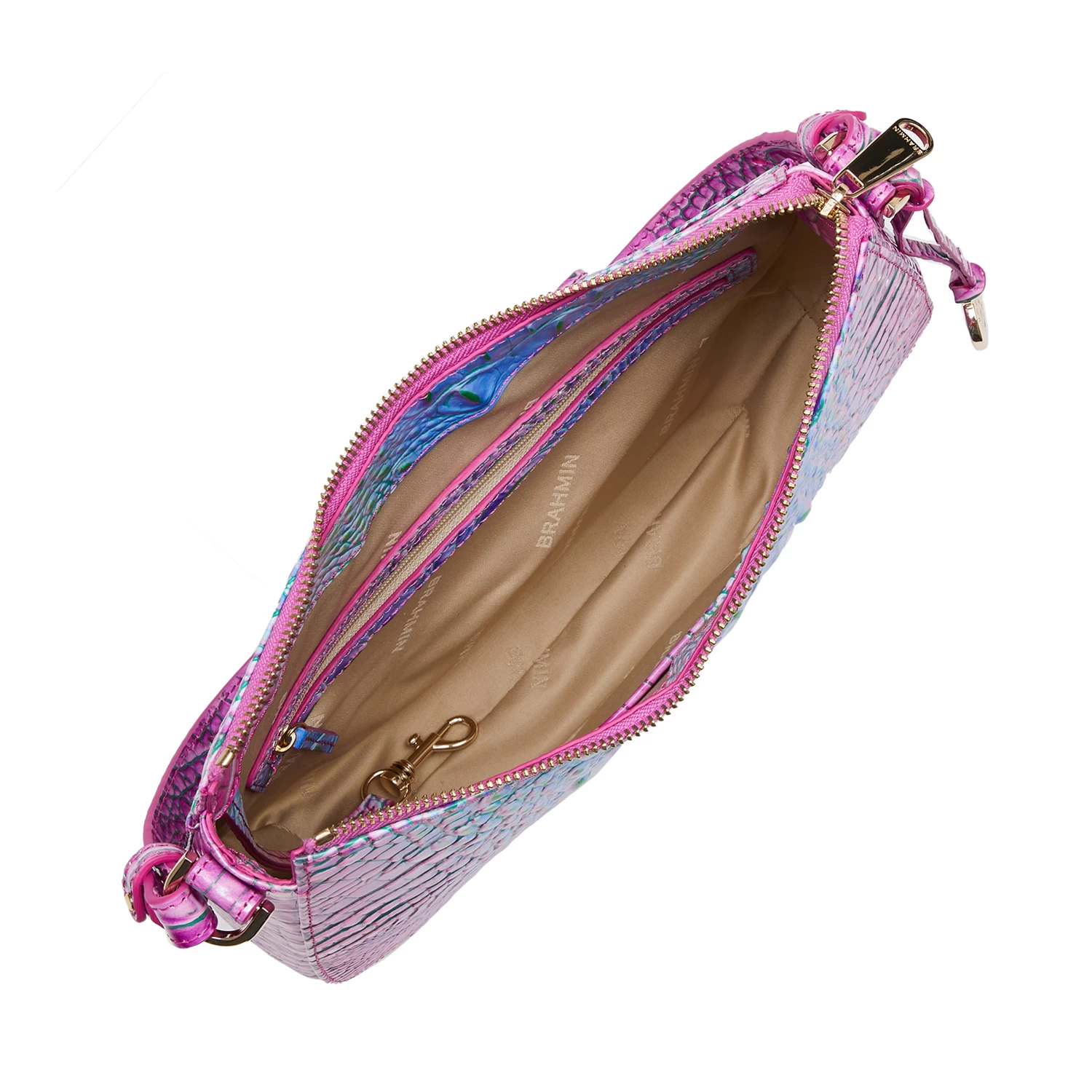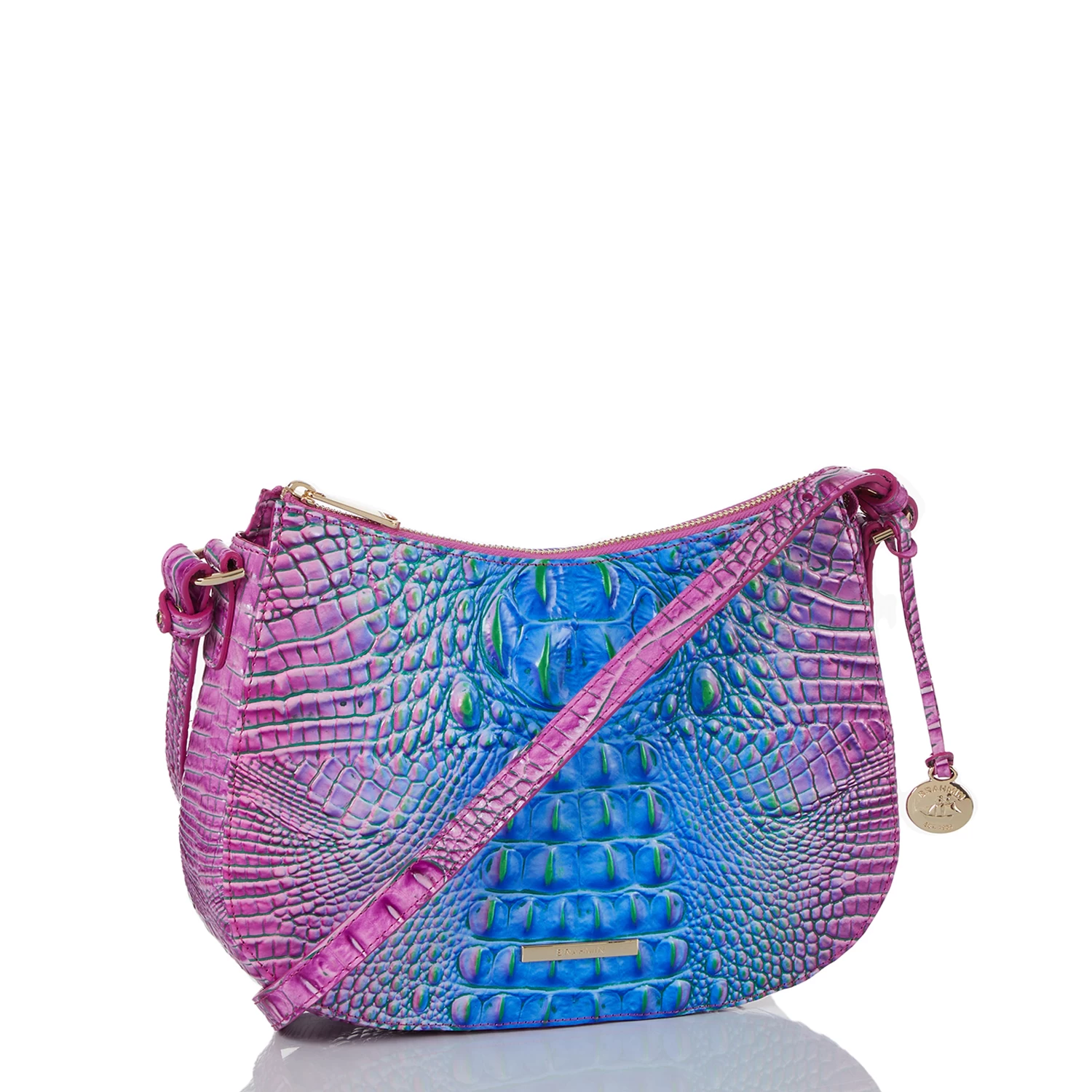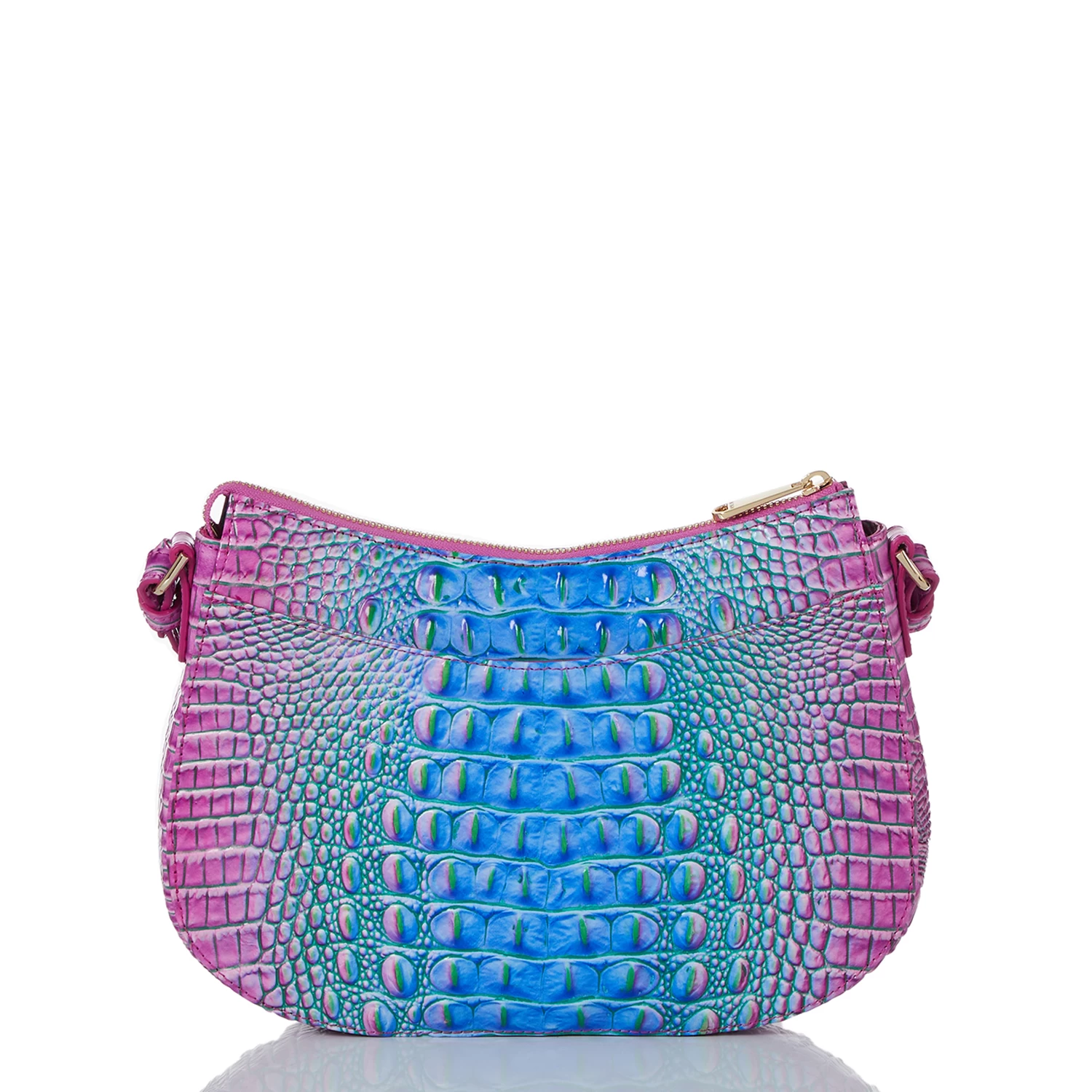 Featured in Divine Ombre Melbourne, a vibrant and unexpected ombre. This blends cool cobalt blue with a soft touch of metallic mint green that transitions into a bright, vibrant magenta. Made with genuine croc-embossed leather.