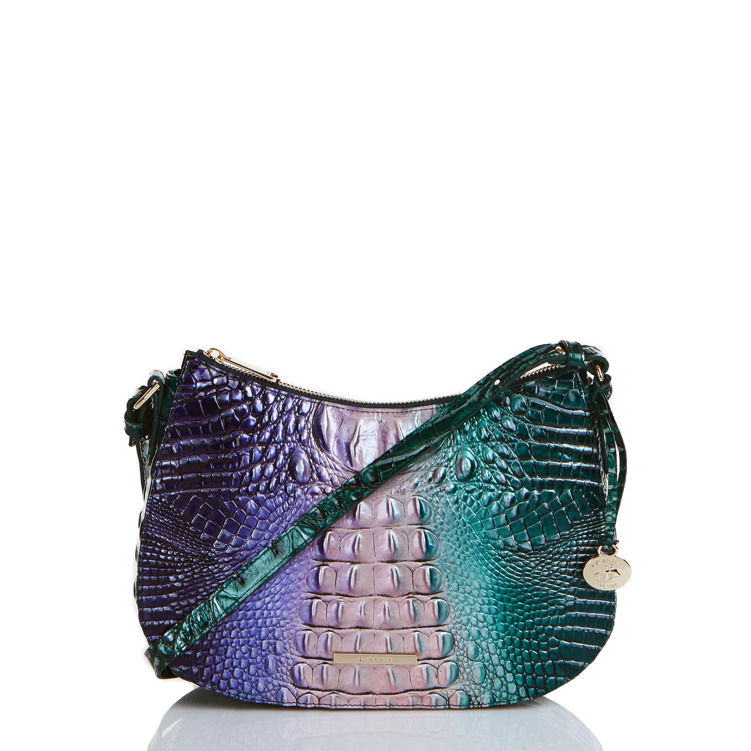 Featured in Enchanted Ombre Melbourne, a mystical and unique asymmetrical ombre that showcases a pink pearl center with bold purple and rich teal tones towards the edge. Made with genuine croc-embossed leather.