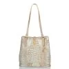 Featured in Ivory Iguana Melbourne, an elevated new neutral. This versatile warm cream features gold accents that lend luxury to the look. This also features hints of a lizard print for added dimension. Made with genuine croc-embossed leather.
