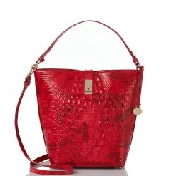Featured in Red Flare Melbourne, a vibrant high-shine red that will make a striking statement this season. This dynamic print is infused with varying shades of red; from vibrant and warm to darker, richer variations, this combination brings a bold statement to warmer weather. Made with genuine croc-embossed leather.